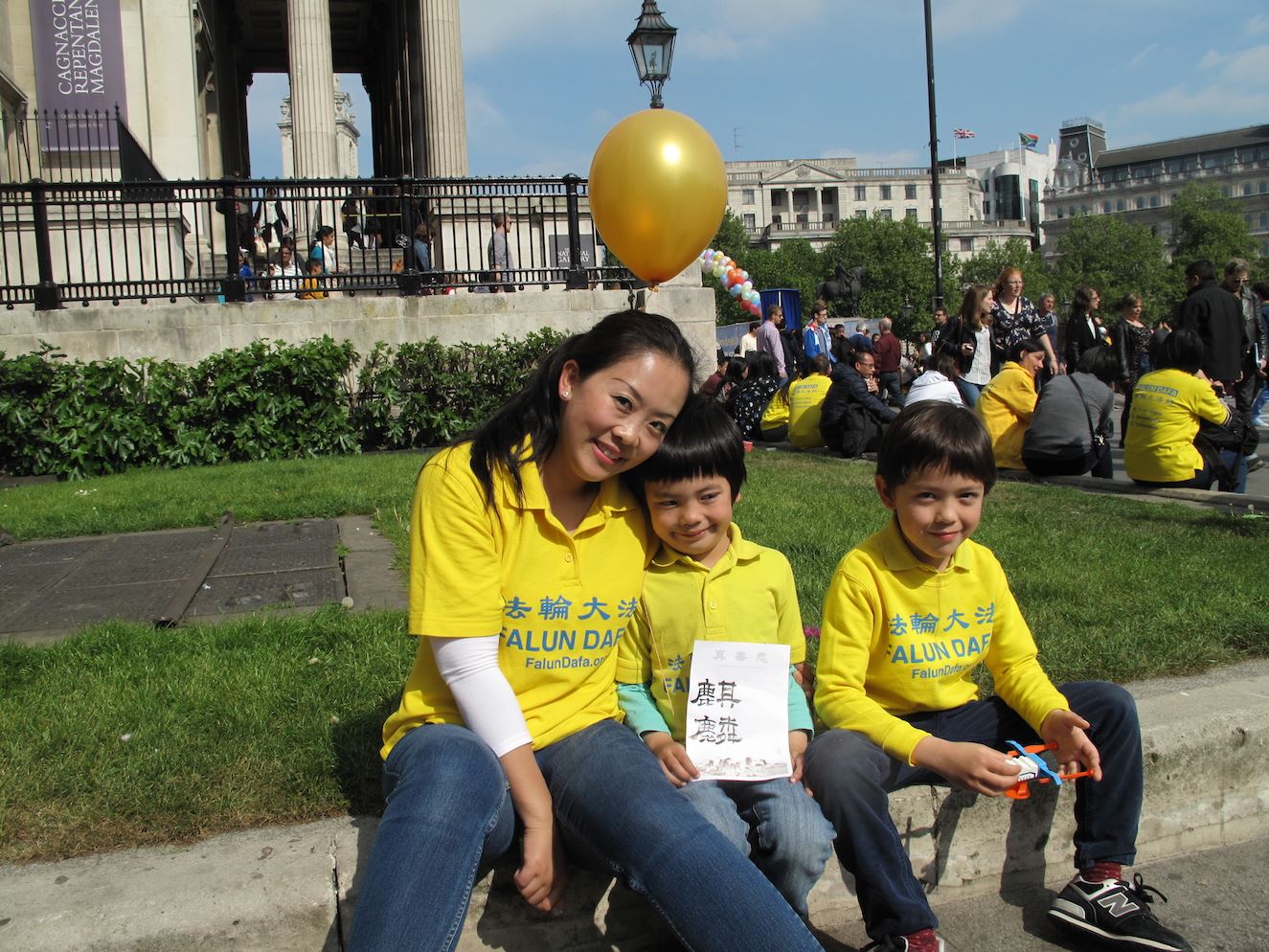 ![]() 图4:二零一七年五月七日,七岁的莱昂纳多和五岁的塞巴斯蒂安跟妈妈苏一起参加了在伦敦举行的庆祝“5·13世界法轮大法日”活动。 |