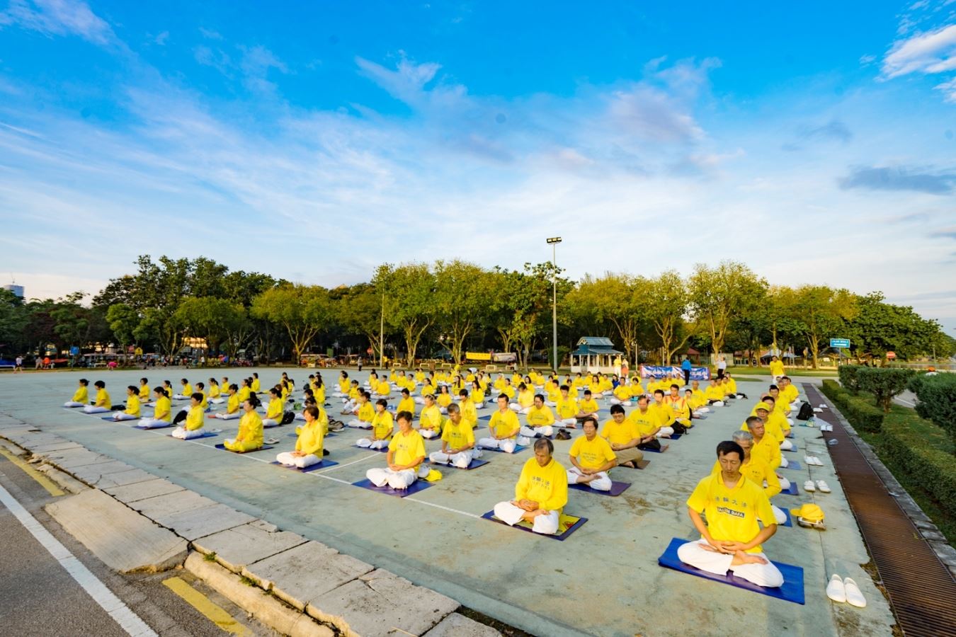 '图6~7:五月七日,马来西亚部份法轮功学员在吉隆坡蒂蒂旺莎湖滨公园举行集体炼功。'