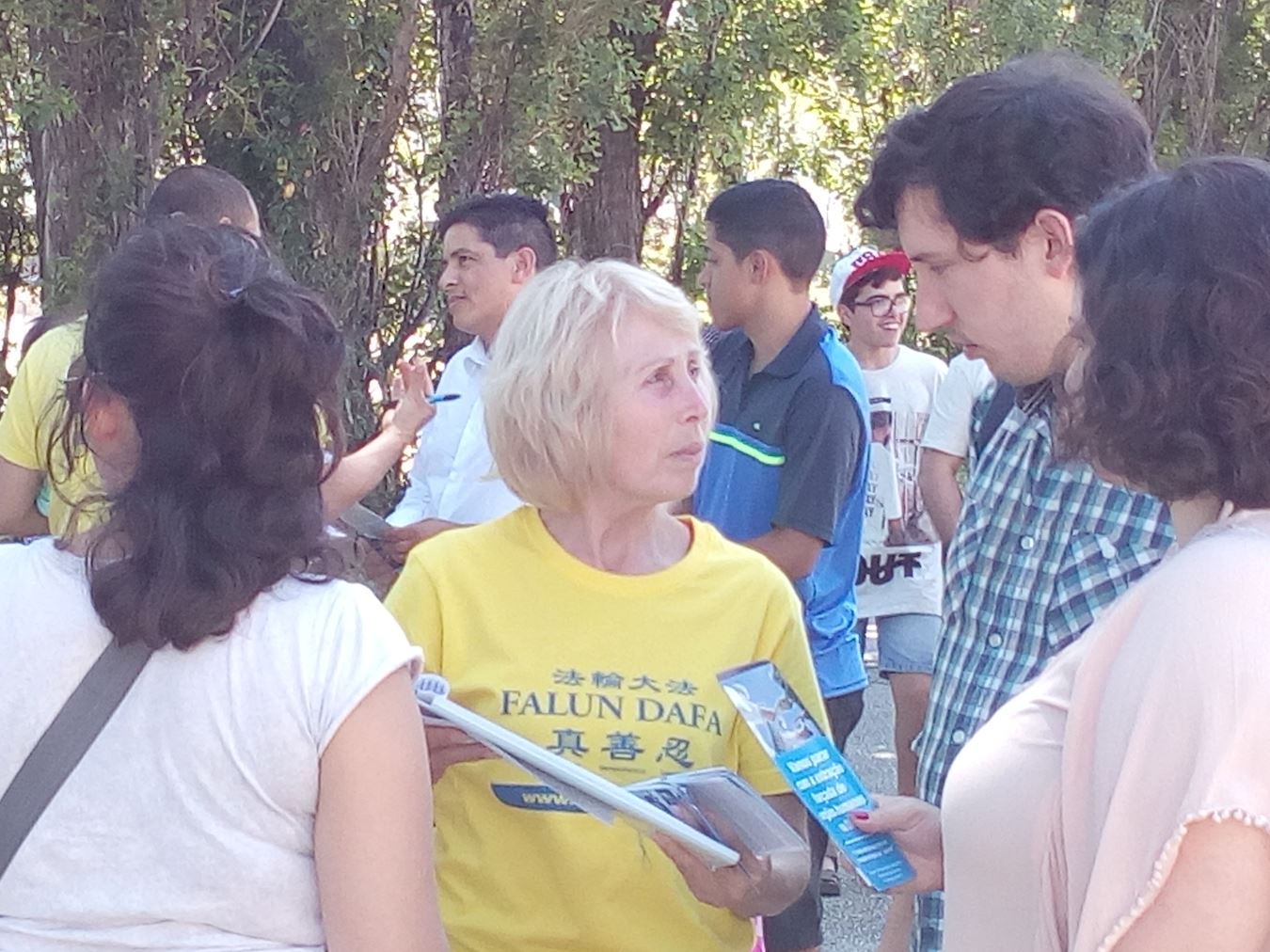 当天,中西方法轮功学员在世博会公园以集体炼功、讲真相及征签反迫害等活动,传播法轮大法的美好,感谢师尊的慈悲。许多市民驻足观看祥和舒缓的法轮功功法,有的坐在学员旁边一起炼功,有的当场学功,有的拍照,有的详细阅读真相展板的介绍内容。