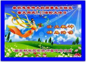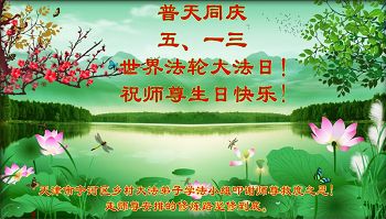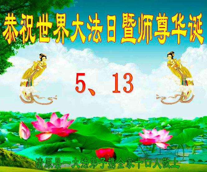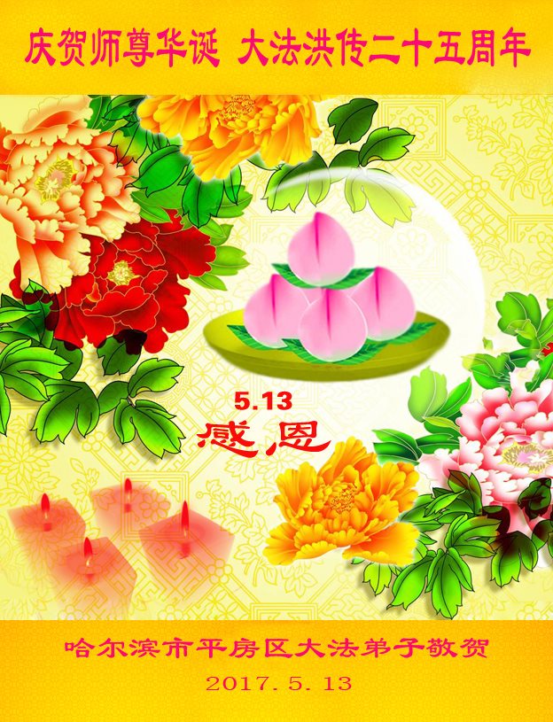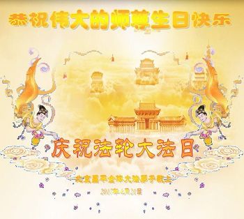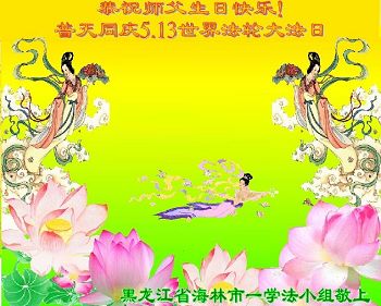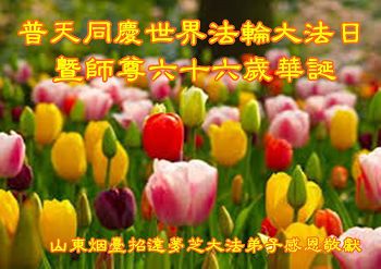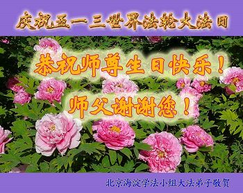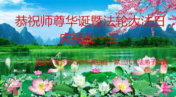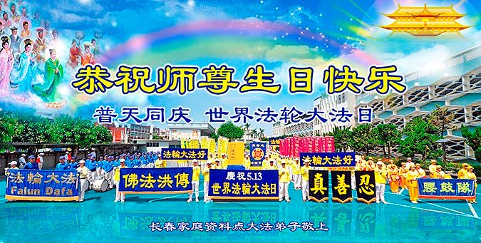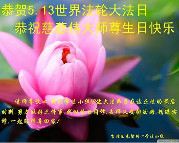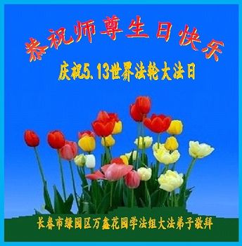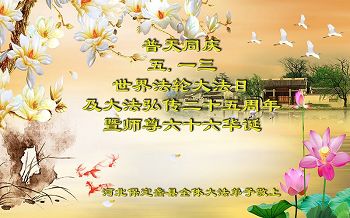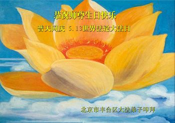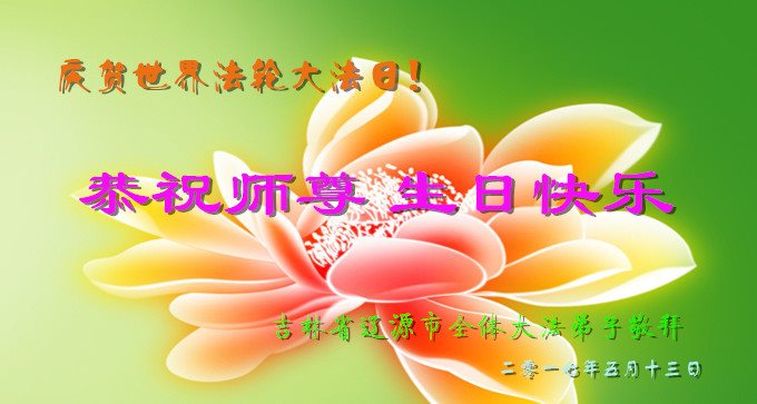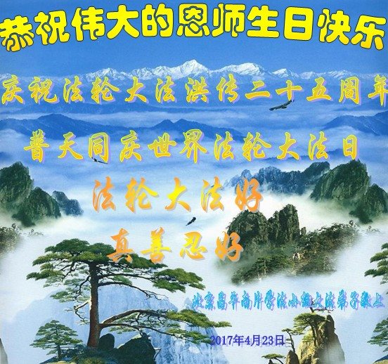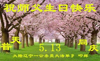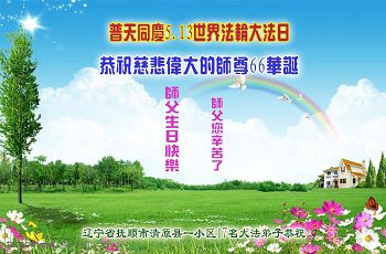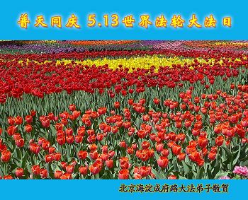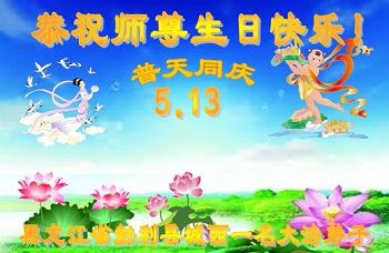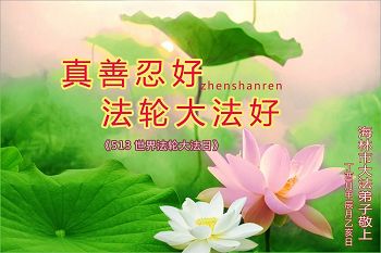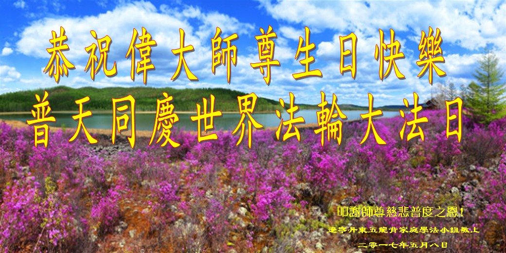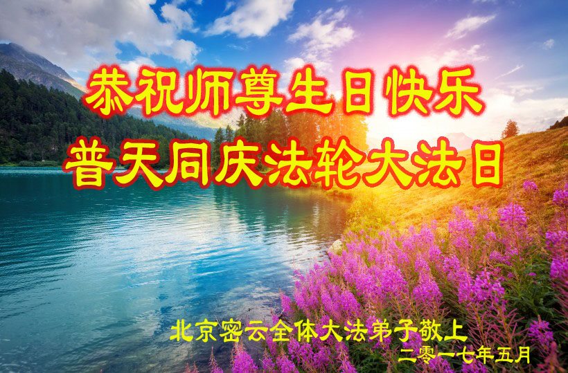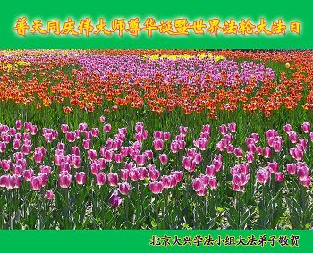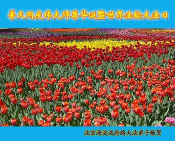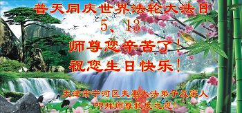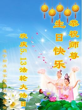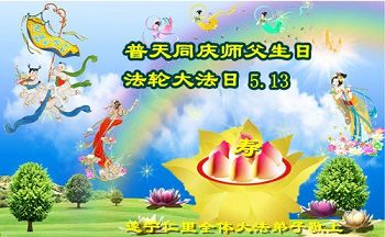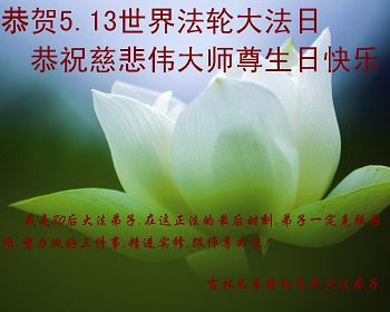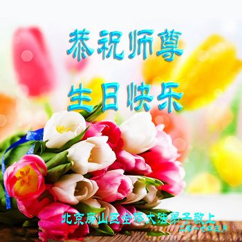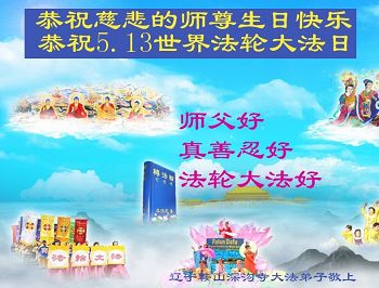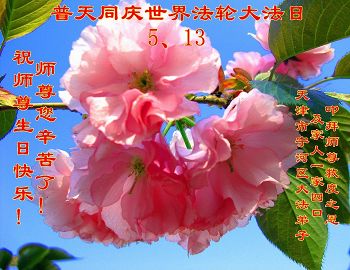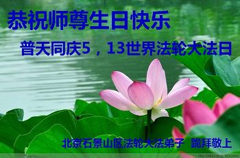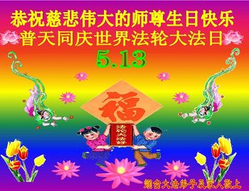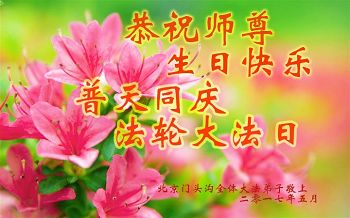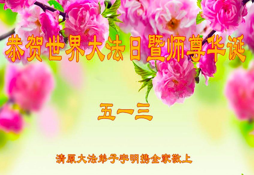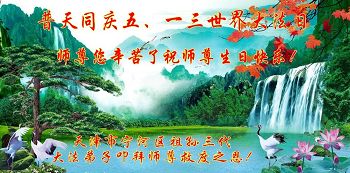 “五·一三”世界法轮大法日是普天同庆的伟大节日,今年的“五·一三”是法轮大法传世二十五周年,又是伟大师尊六十六岁华诞,在此,北京清华大学大法弟子向至尊至敬的师父致以最崇高的敬意!恭祝慈悲伟大师尊生日快乐!师父好!师父您辛苦了!师父谢谢您!