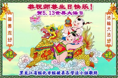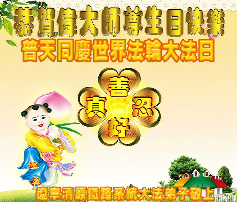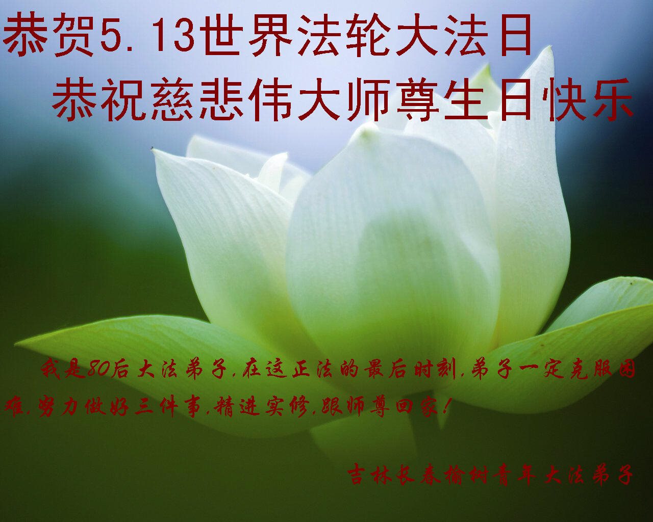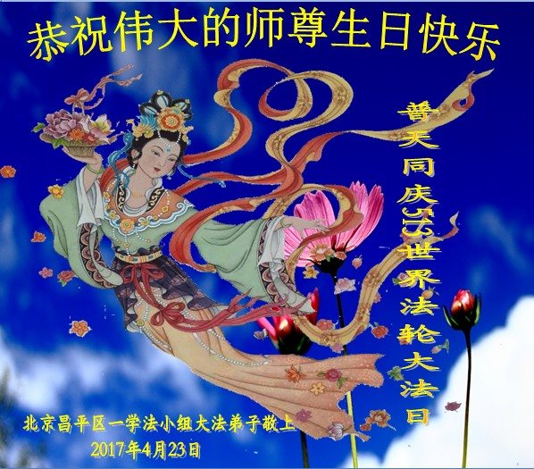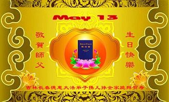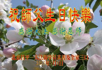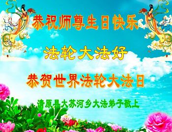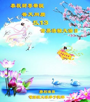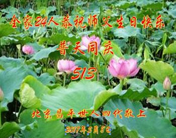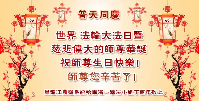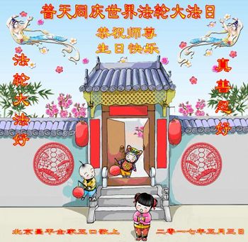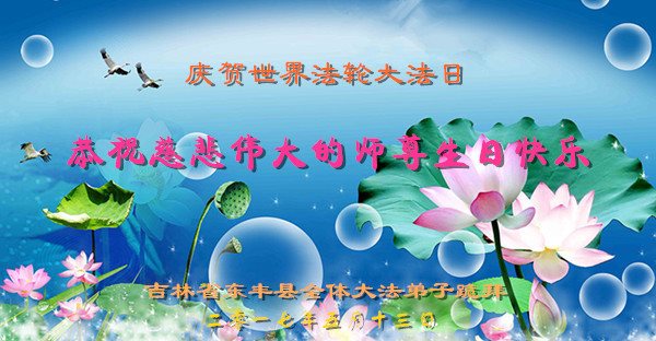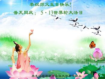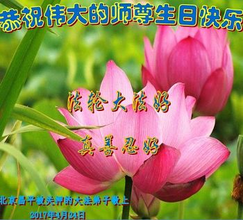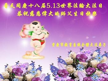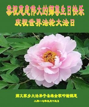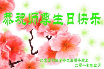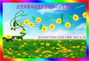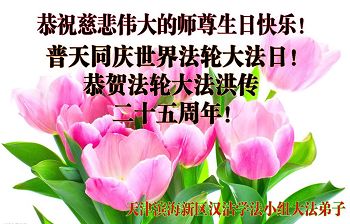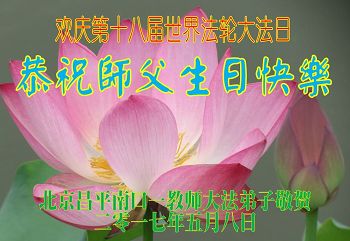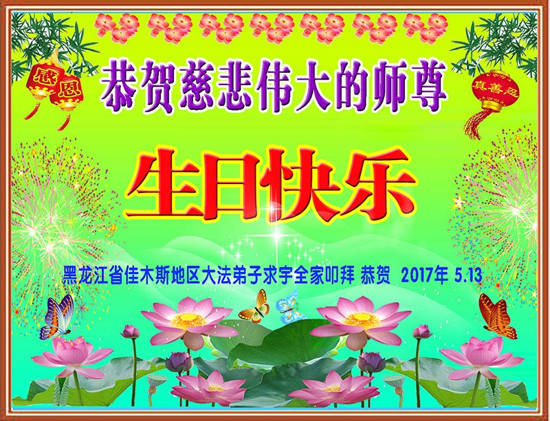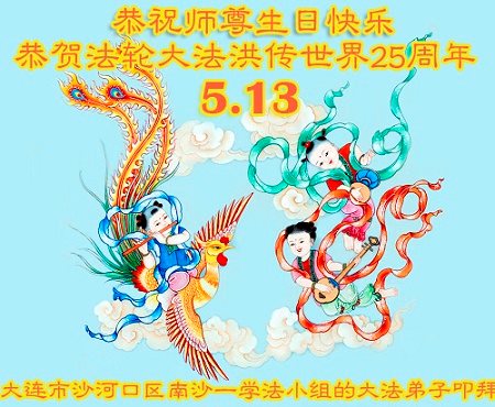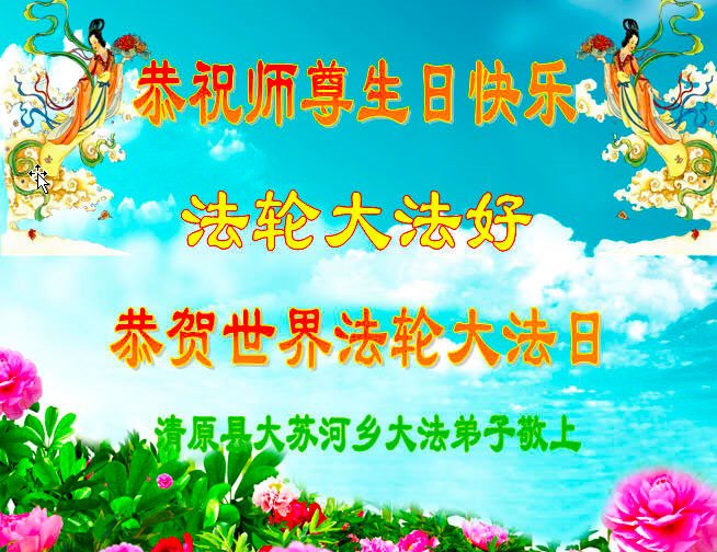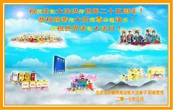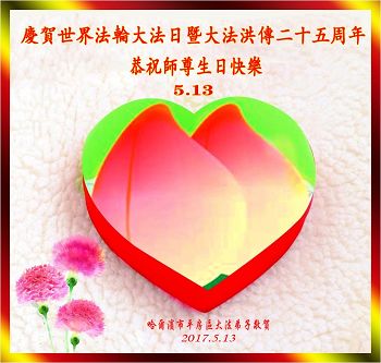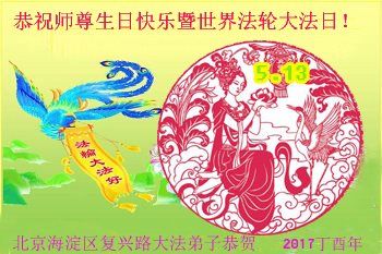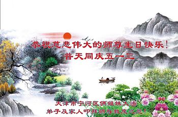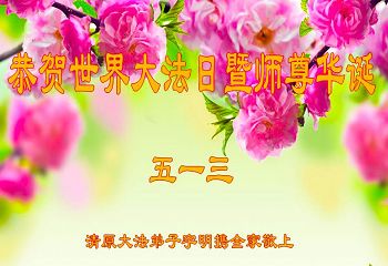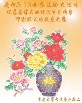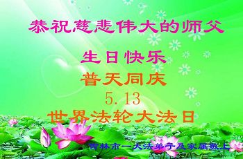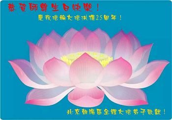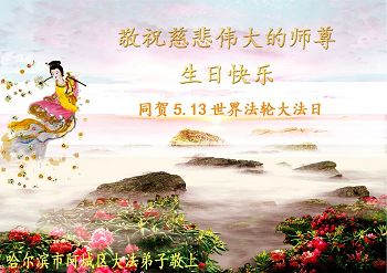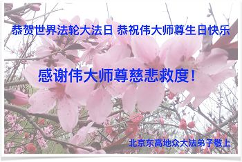 “五·一三”世界法轮大法日是普天同庆的伟大节日,今年的“五·一三”是法轮大法传世二十五周年,又是伟大师尊六十六岁华诞,在此,北京清华大学大法弟子向至尊至敬的师父致以最崇高的敬意!恭祝慈悲伟大师尊生日快乐!师父好!师父您辛苦了!师父谢谢您!