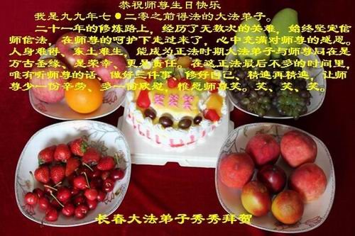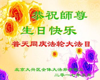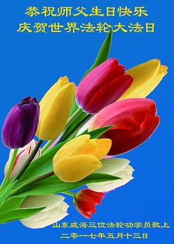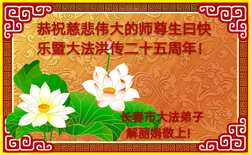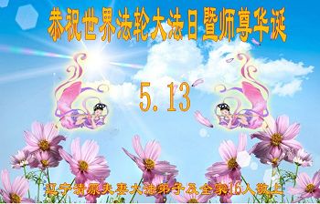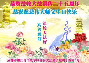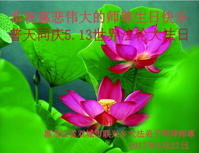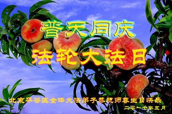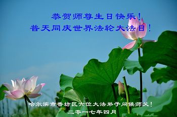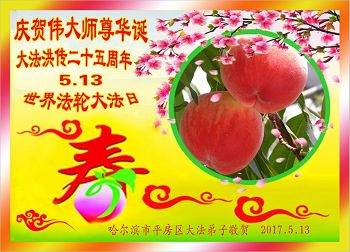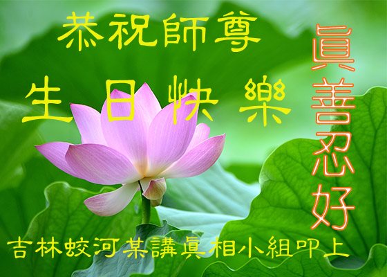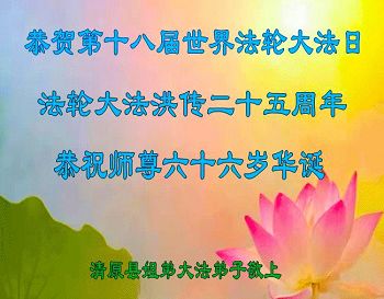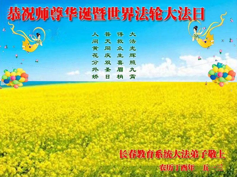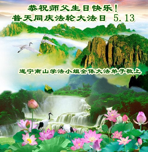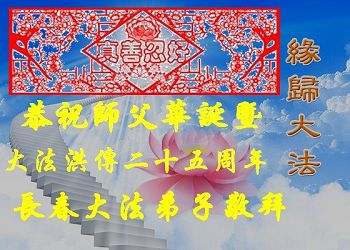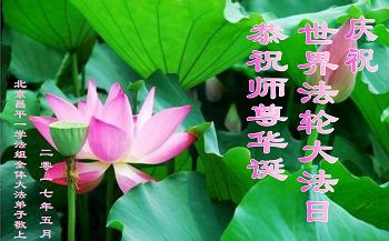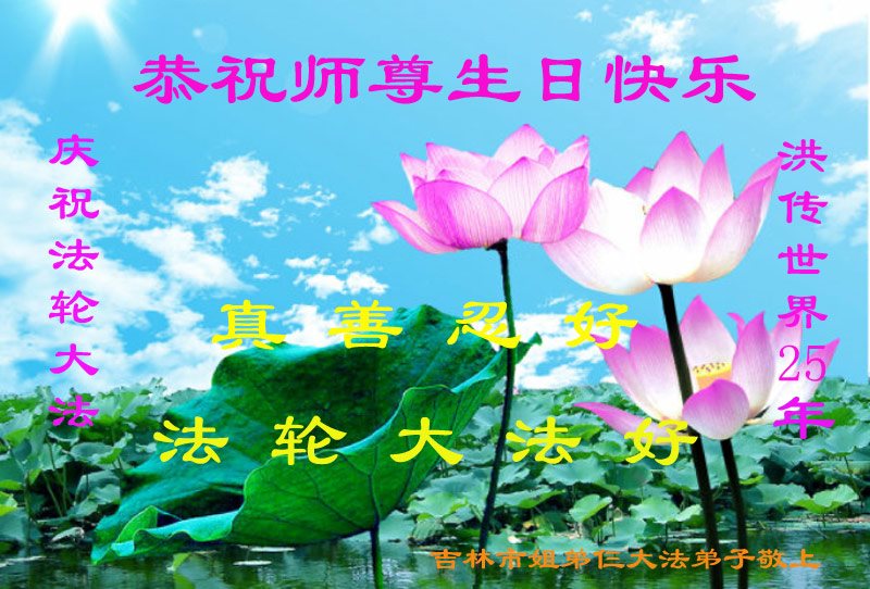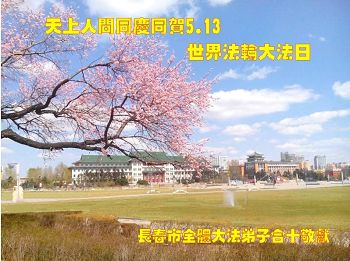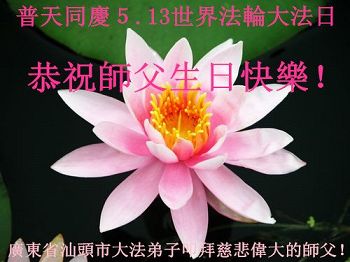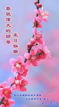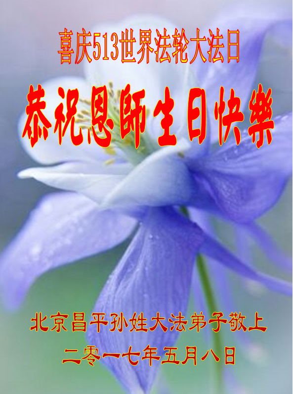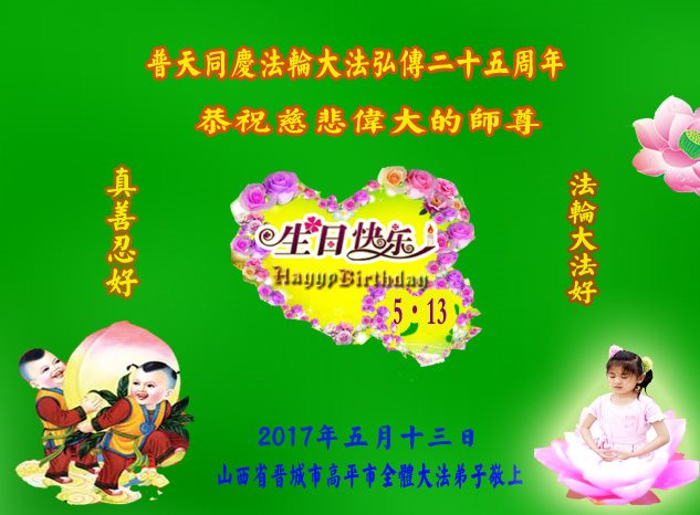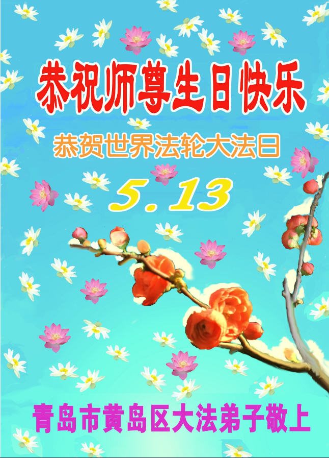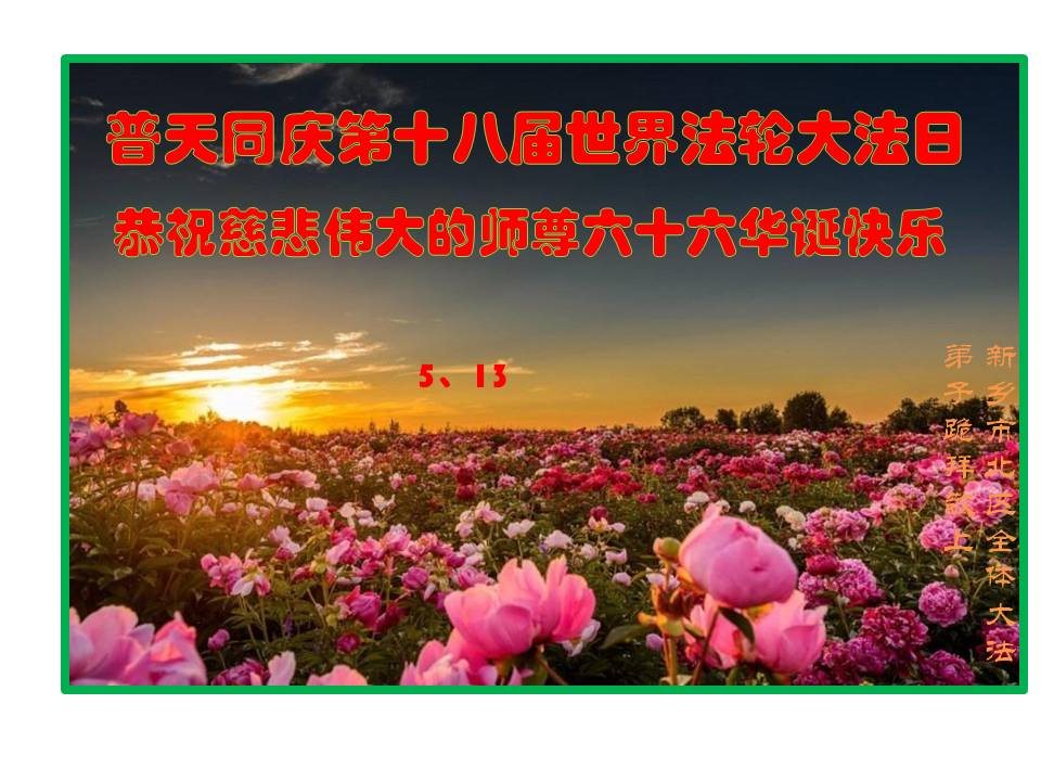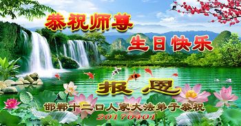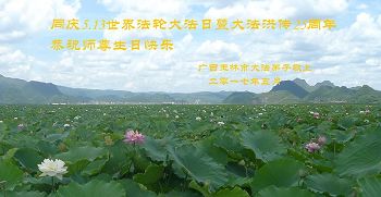 “五·一三”世界法轮大法日是普天同庆的伟大节日,今年的“五·一三”是法轮大法传世二十五周年,又是伟大师尊六十六岁华诞,在此,北京清华大学大法弟子向至尊至敬的师父致以最崇高的敬意!恭祝慈悲伟大师尊生日快乐!师父好!师父您辛苦了!师父谢谢您!