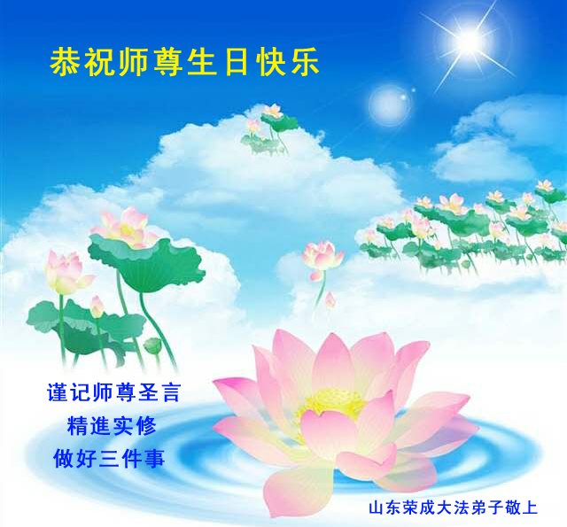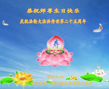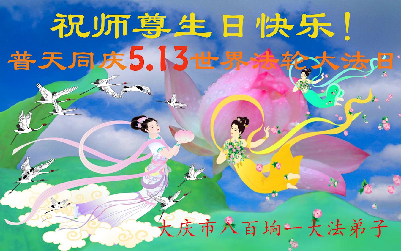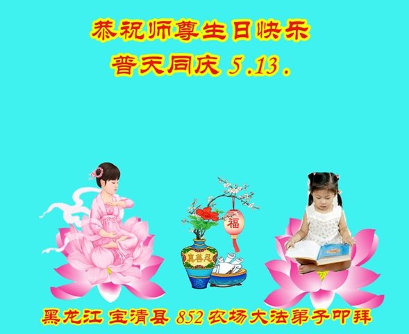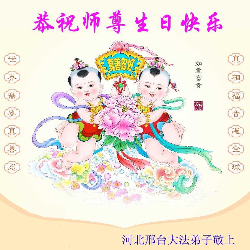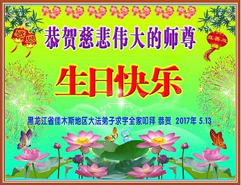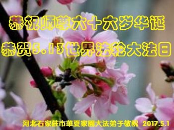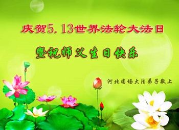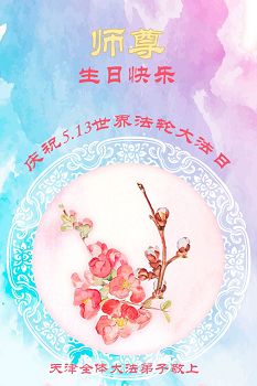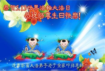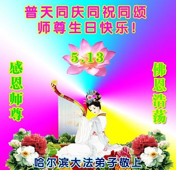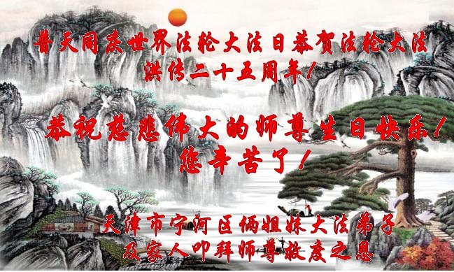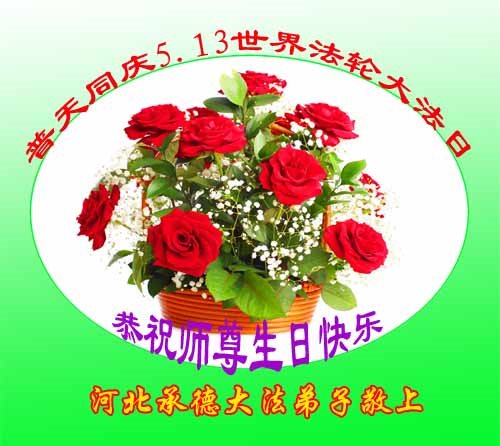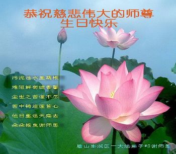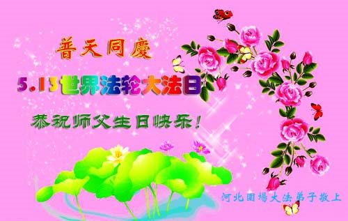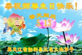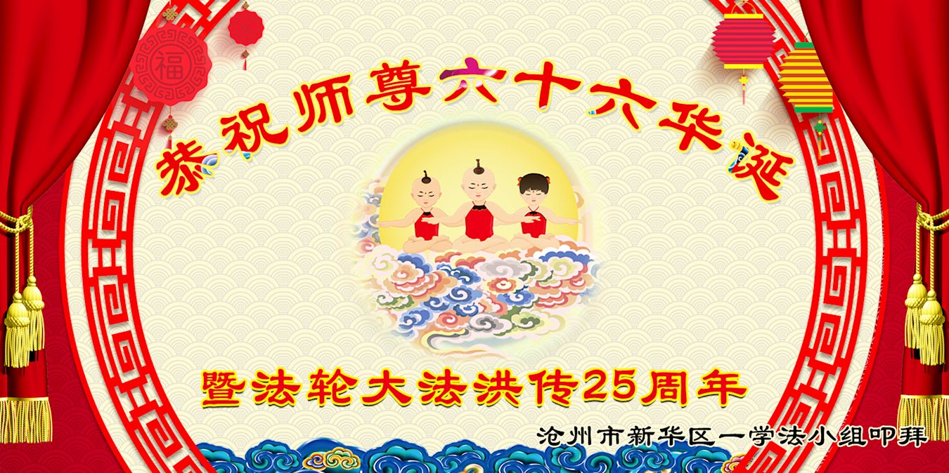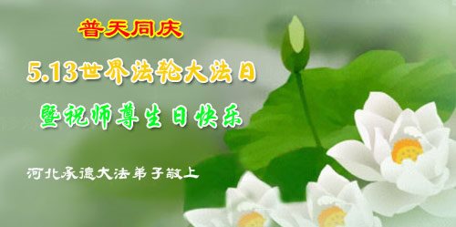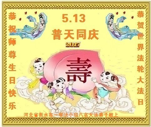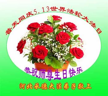 在“5.13”这个感恩的日子,我们天津市宁河区全体大法弟子祝师尊生日快乐!师尊您辛苦了! 我们深知师尊救度一个生命的艰辛,切身体会到一个生命被救度的荣幸!能成为师父的弟子,能成为宇宙大法修炼者中的一员,是多么的幸福!在师父慈悲救度下,在师父的保护与加持下,我们由一个业力满身的人走在了成神的路上,弟子们对师父无限的敬仰,无限的感恩!