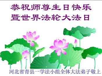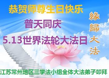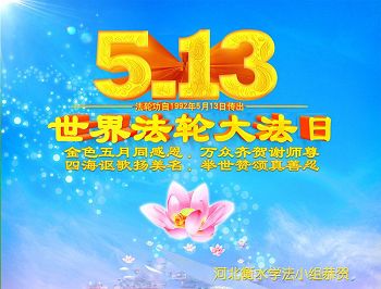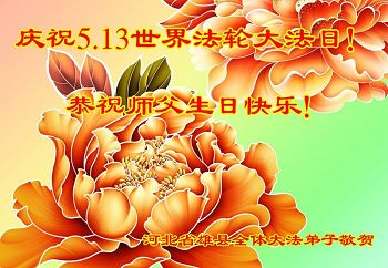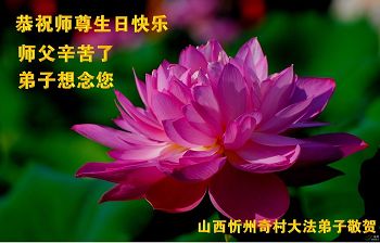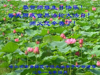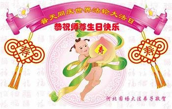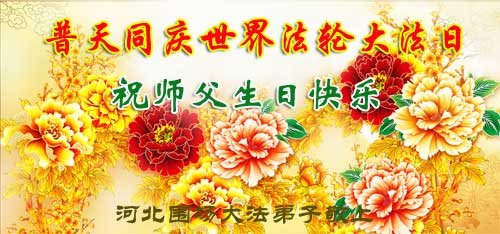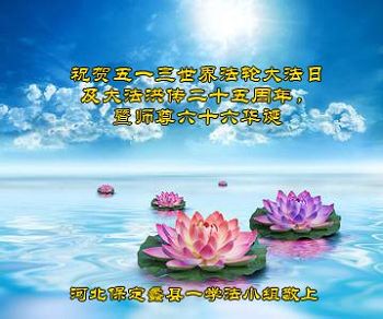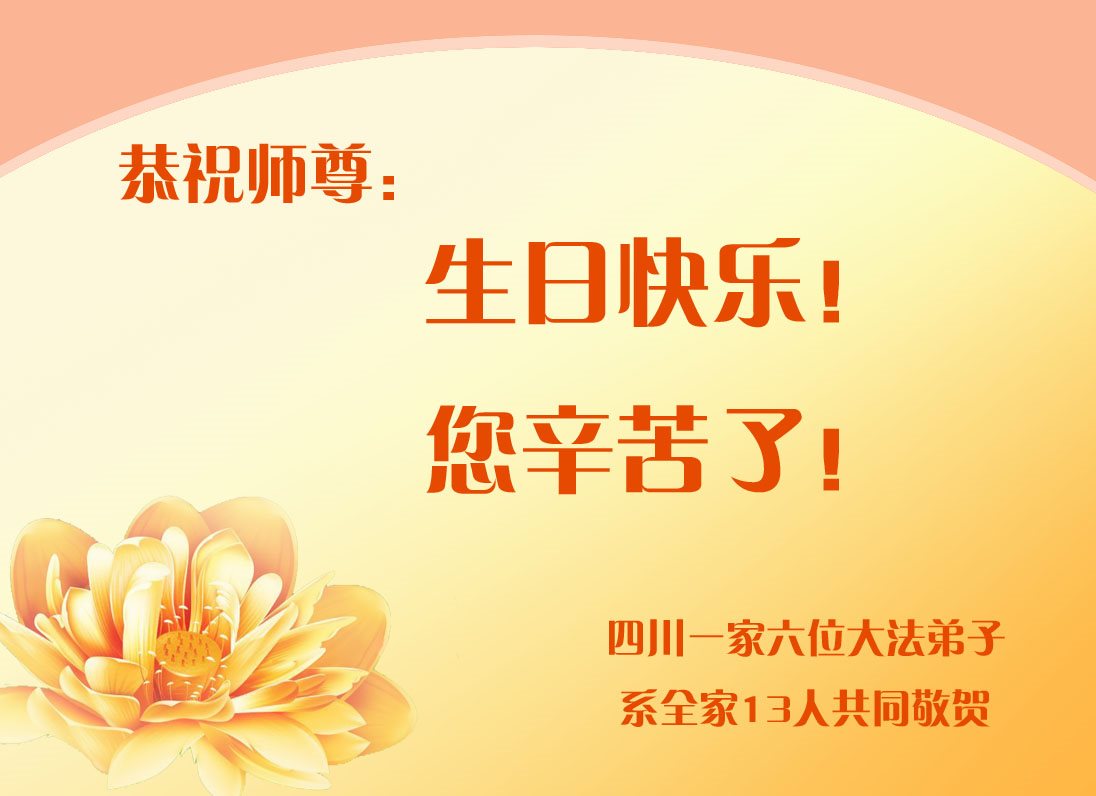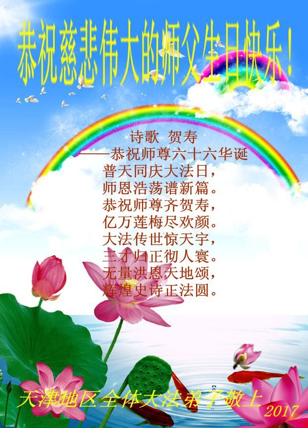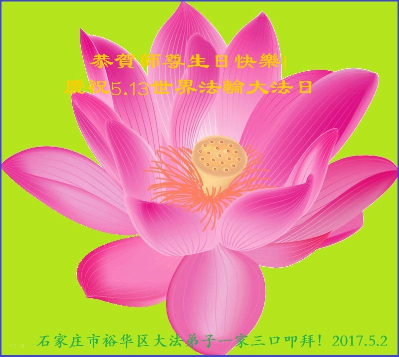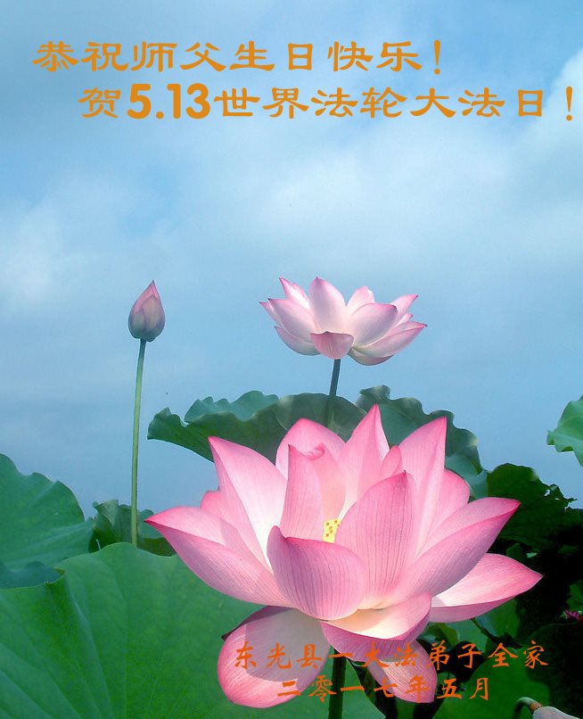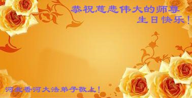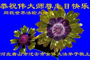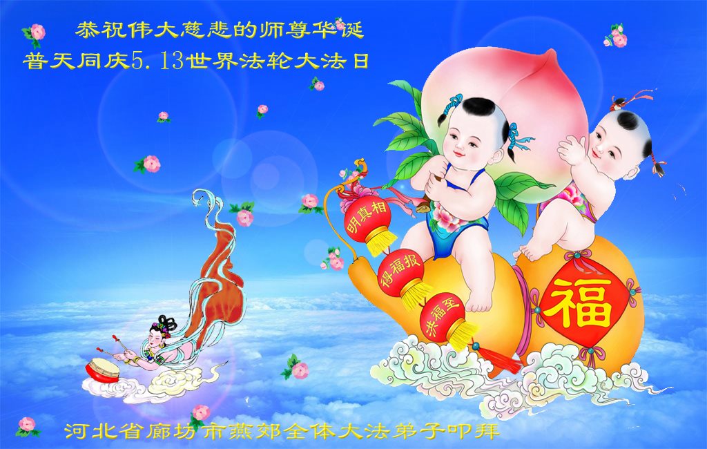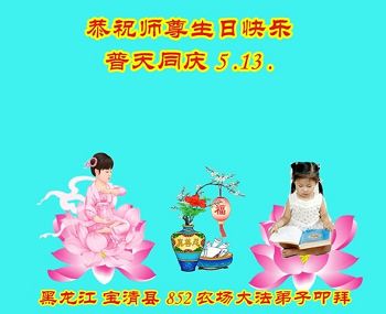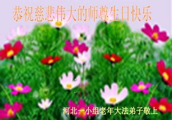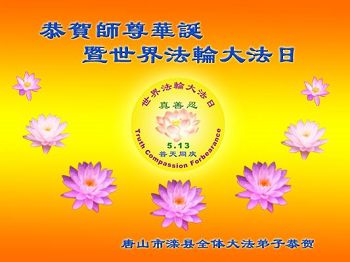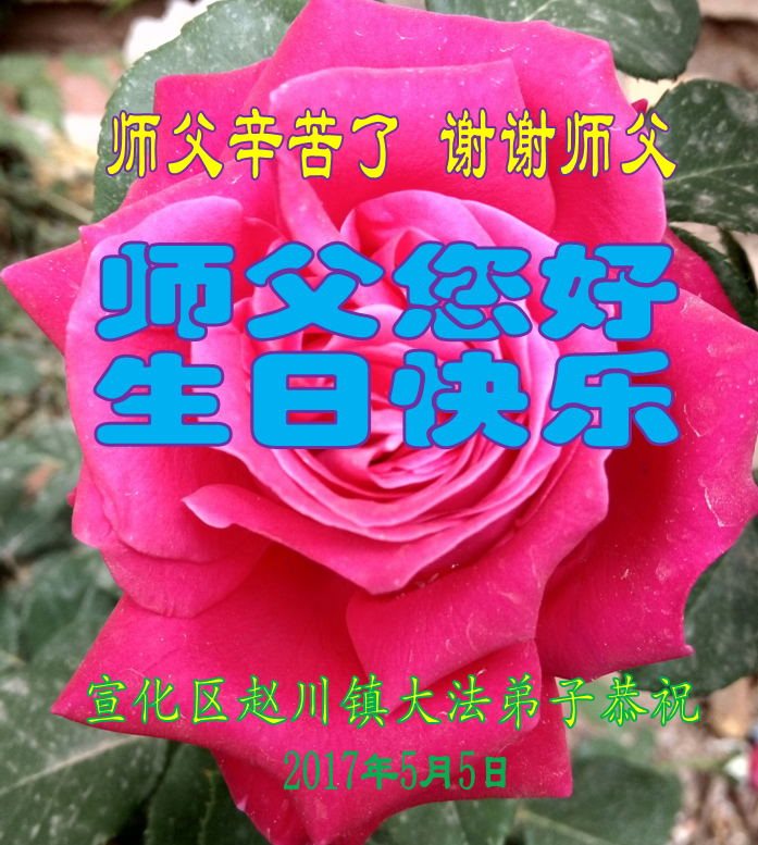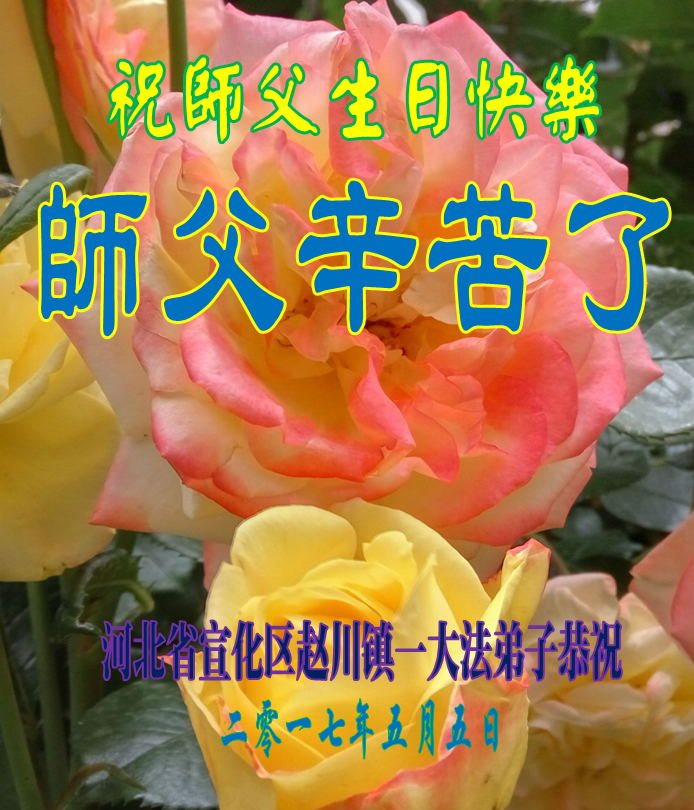 在“5.13”这个感恩的日子,我们天津市宁河区全体大法弟子祝师尊生日快乐!师尊您辛苦了! 我们深知师尊救度一个生命的艰辛,切身体会到一个生命被救度的荣幸!能成为师父的弟子,能成为宇宙大法修炼者中的一员,是多么的幸福!在师父慈悲救度下,在师父的保护与加持下,我们由一个业力满身的人走在了成神的路上,弟子们对师父无限的敬仰,无限的感恩!