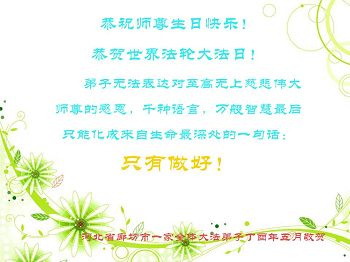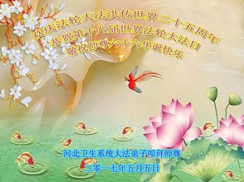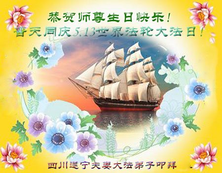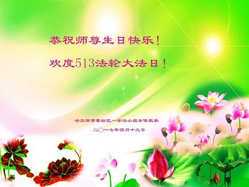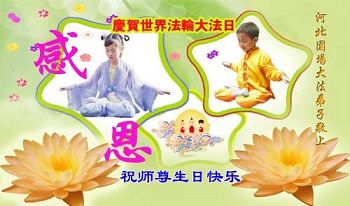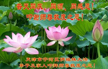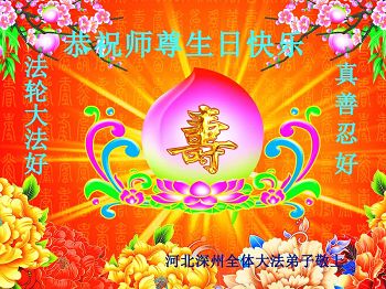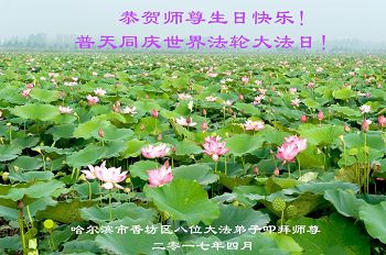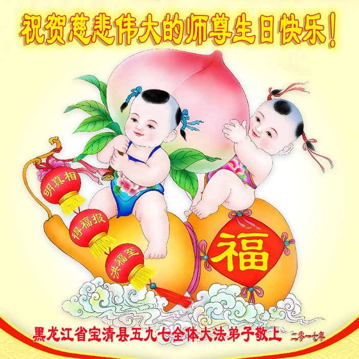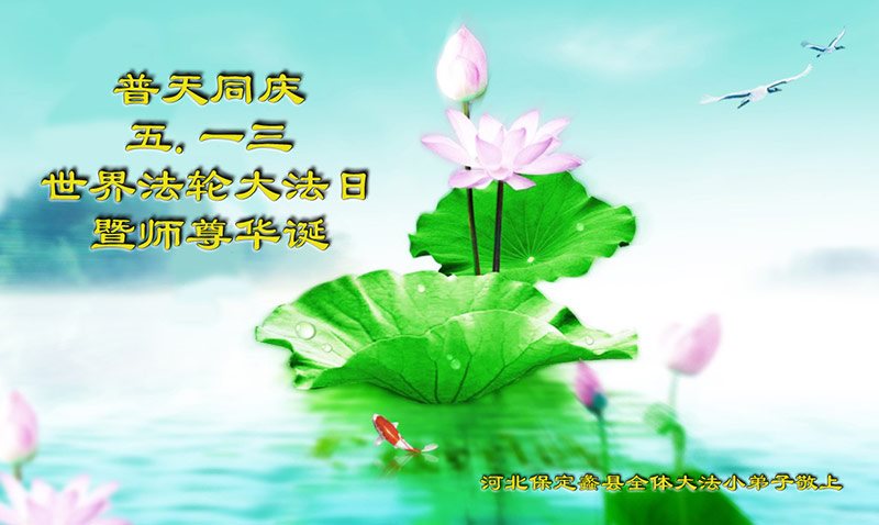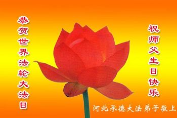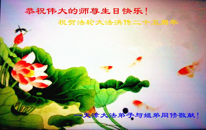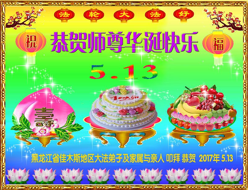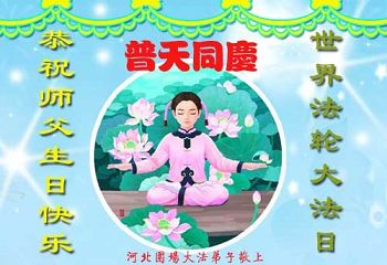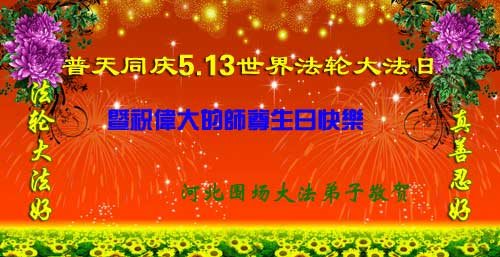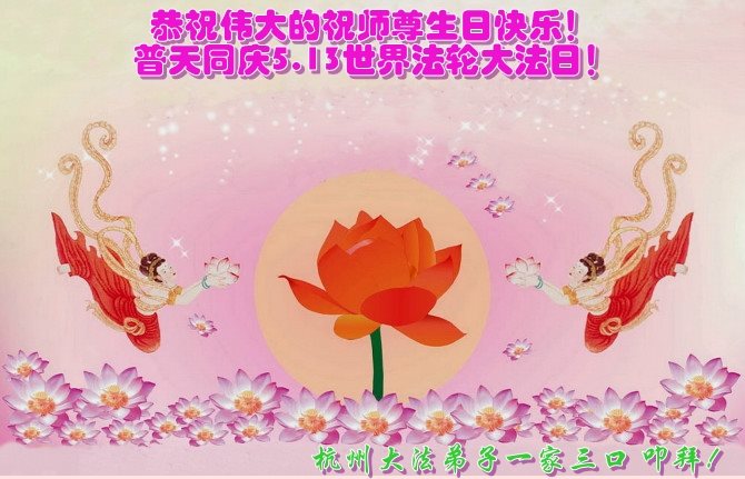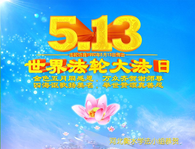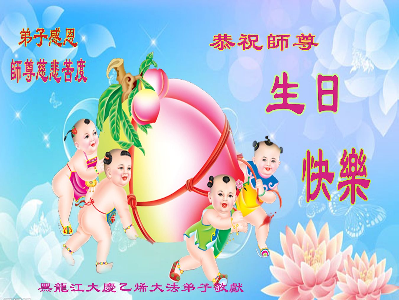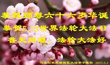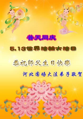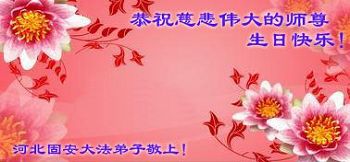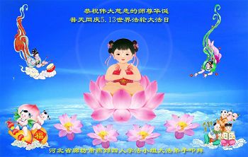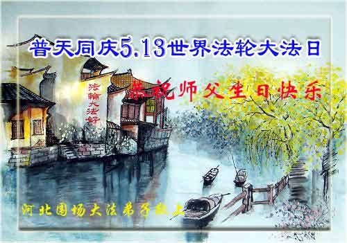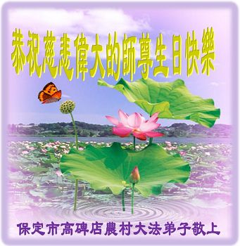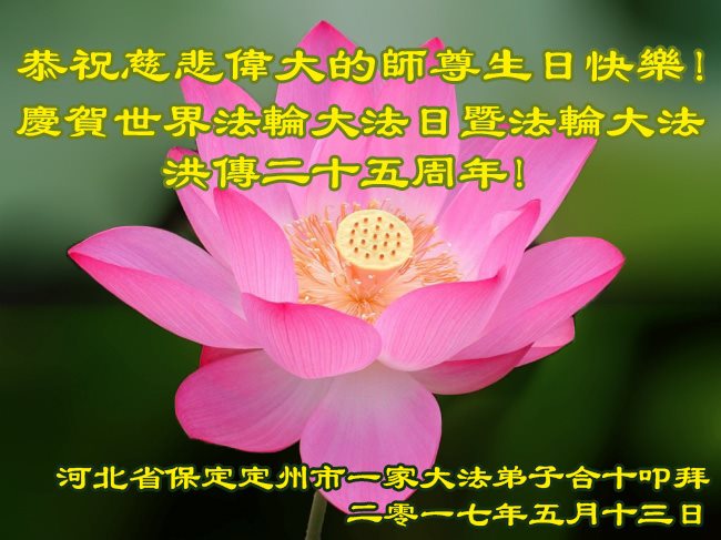 在“5.13”这个感恩的日子,我们天津市宁河区全体大法弟子祝师尊生日快乐!师尊您辛苦了! 我们深知师尊救度一个生命的艰辛,切身体会到一个生命被救度的荣幸!能成为师父的弟子,能成为宇宙大法修炼者中的一员,是多么的幸福!在师父慈悲救度下,在师父的保护与加持下,我们由一个业力满身的人走在了成神的路上,弟子们对师父无限的敬仰,无限的感恩!