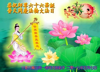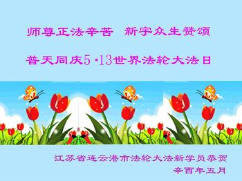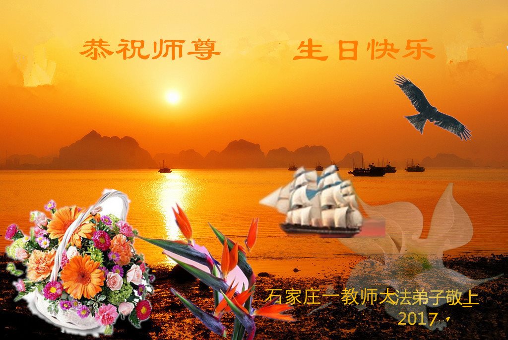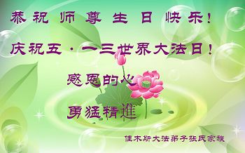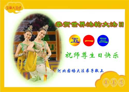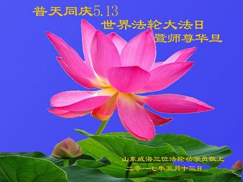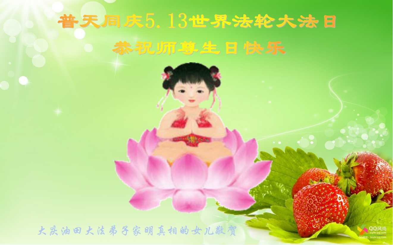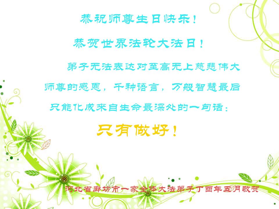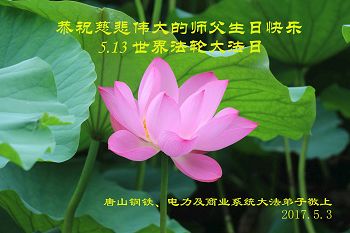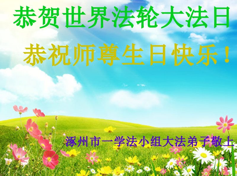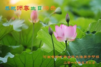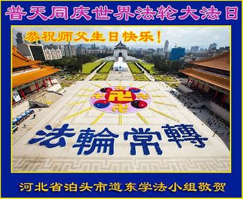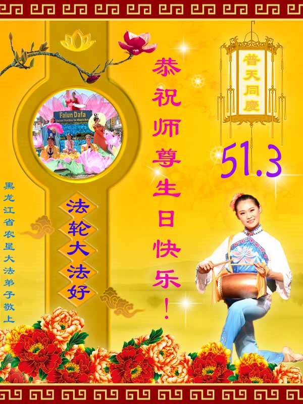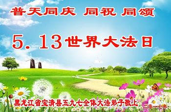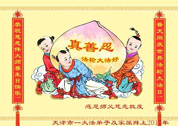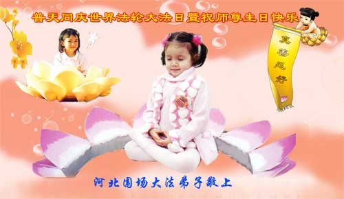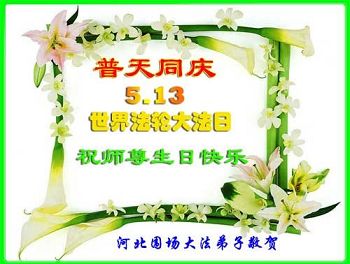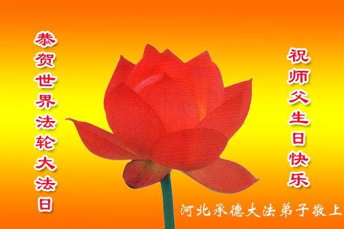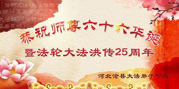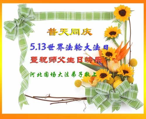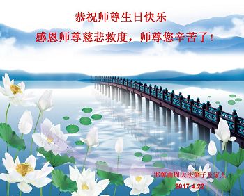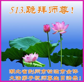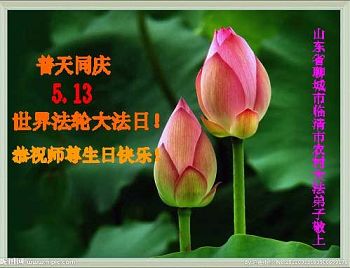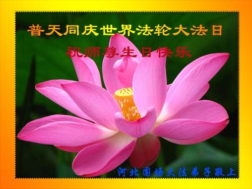 在“5.13”这个感恩的日子,我们天津市宁河区全体大法弟子祝师尊生日快乐!师尊您辛苦了! 我们深知师尊救度一个生命的艰辛,切身体会到一个生命被救度的荣幸!能成为师父的弟子,能成为宇宙大法修炼者中的一员,是多么的幸福!在师父慈悲救度下,在师父的保护与加持下,我们由一个业力满身的人走在了成神的路上,弟子们对师父无限的敬仰,无限的感恩!