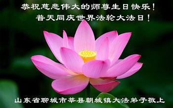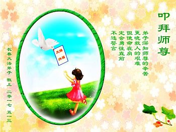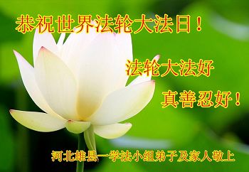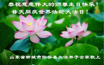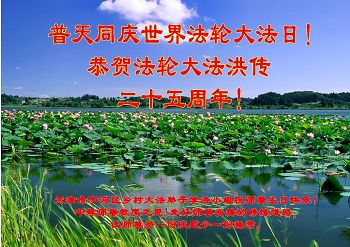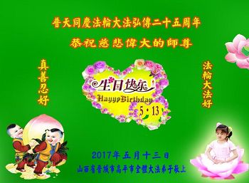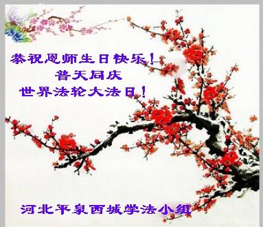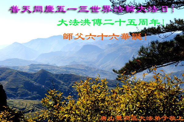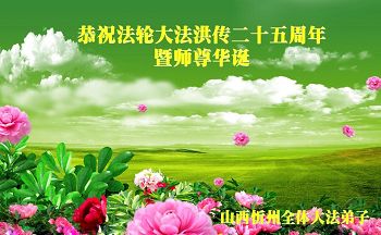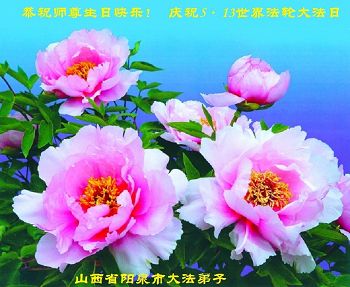 山西省阳泉市平定县全体大法弟子说:“经历了世间的沧桑,我们知道只有大法好;经历了世态炎凉我们更知道大法的珍贵;经历了痛苦与折磨我们更加知道唯有师父和大法才能救度我们,是师父带领我们走过了这段不寻常的岁月。”