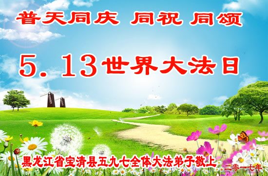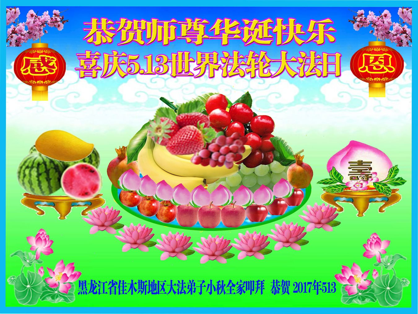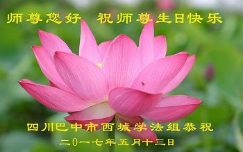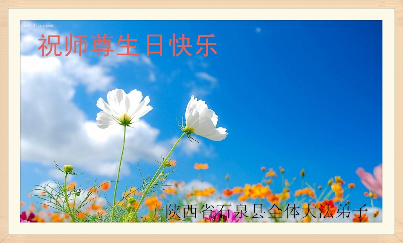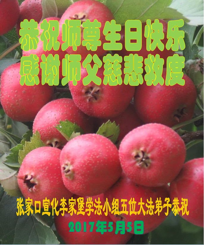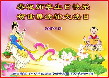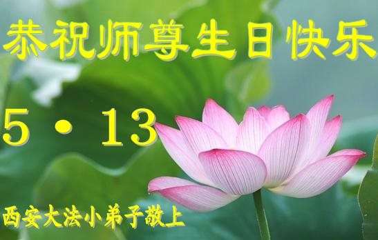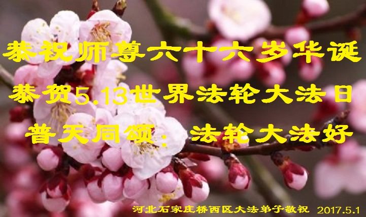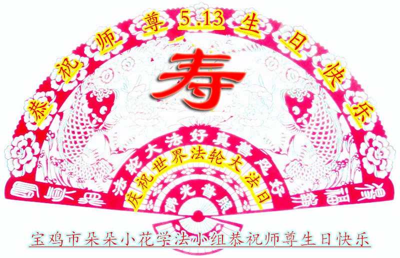 2017年5月13日是我们慈悲伟大的师尊六十六岁华诞,我们宝鸡市相连学法小组全体大法弟子向师父问好!祝师父生日快乐!恭贺5.13世界法轮大法日!