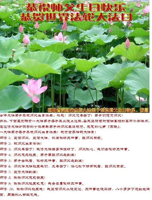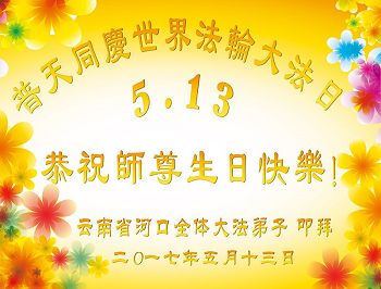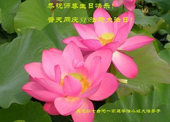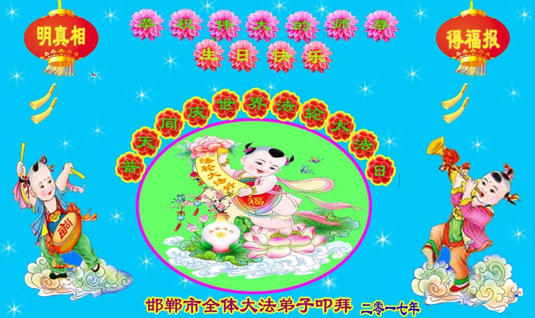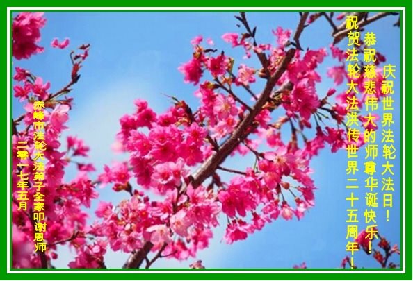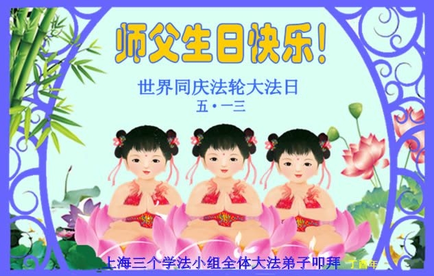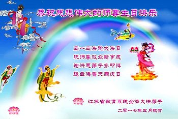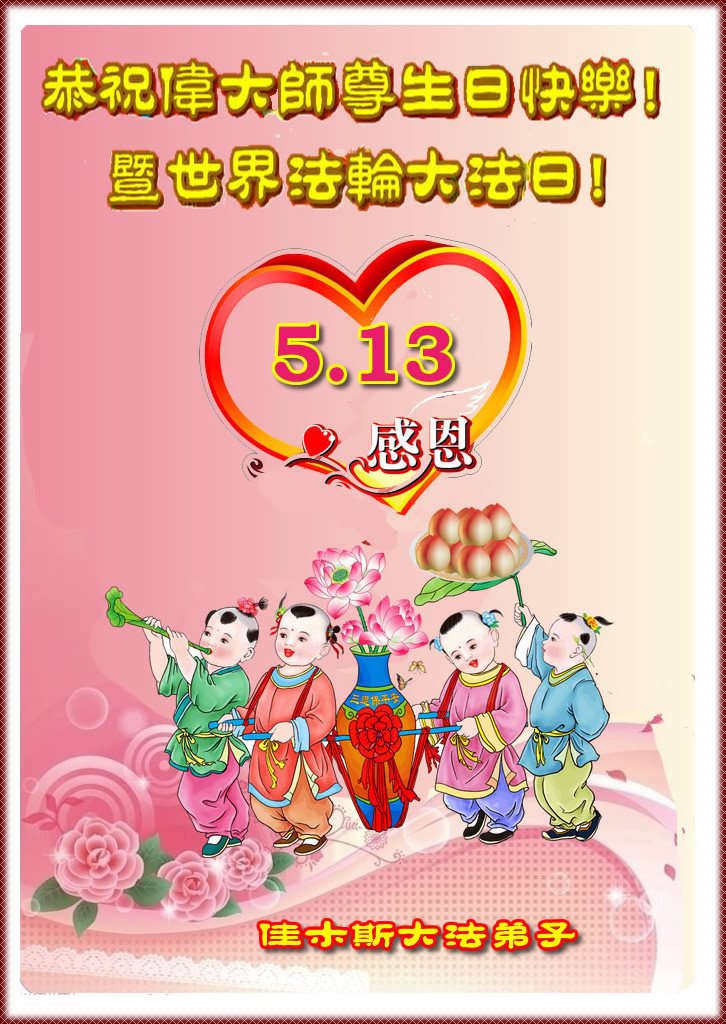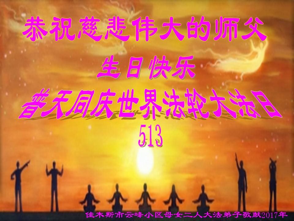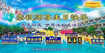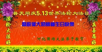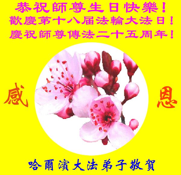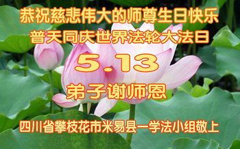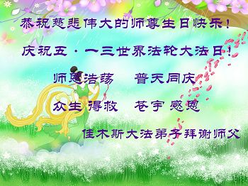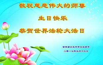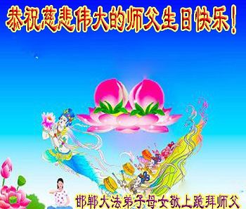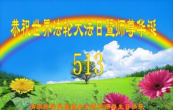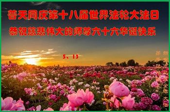 弟子们感谢师尊的慈悲救度!恭祝师尊生日快乐!普天同庆世界法轮大法日!
