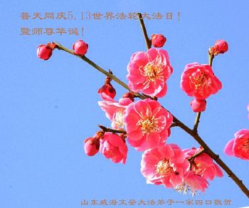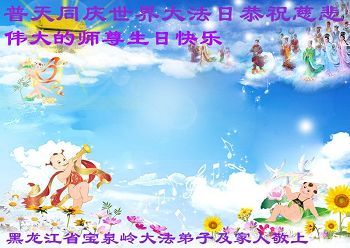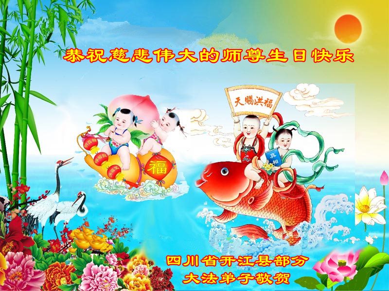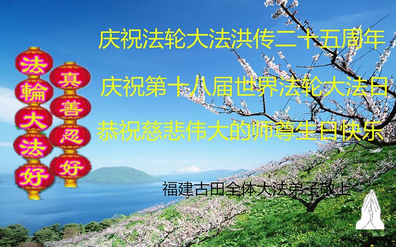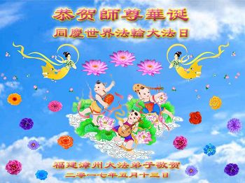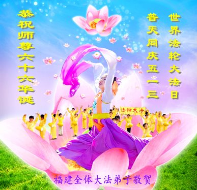 普天同颂大法好,普天同庆大法日!值此普天同颂、同庆的盛大节日来临之际,福建平潭实验区全体大法弟子向师父致以最诚挚、最热烈的祝贺,恭祝师尊生日快乐!节日快乐!