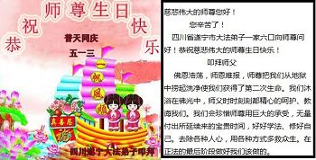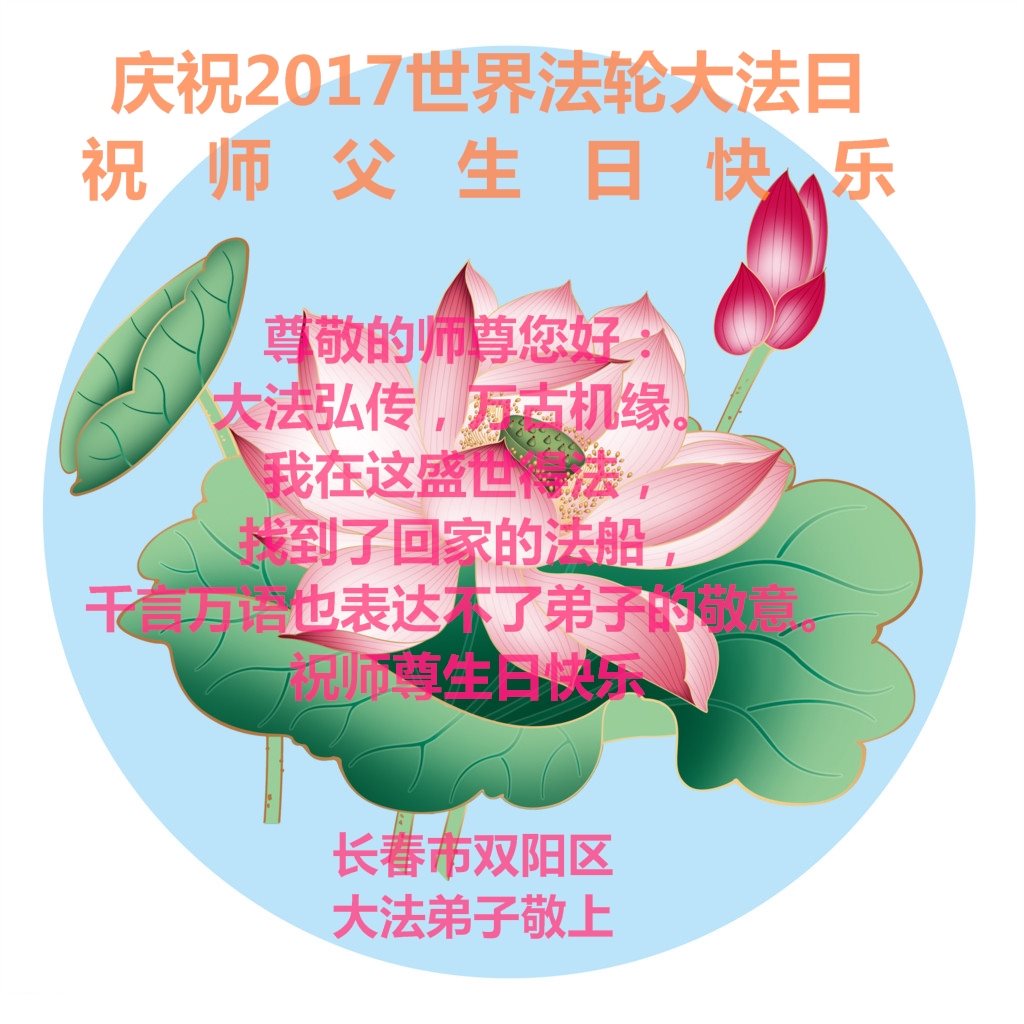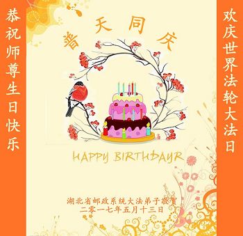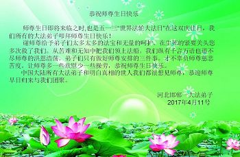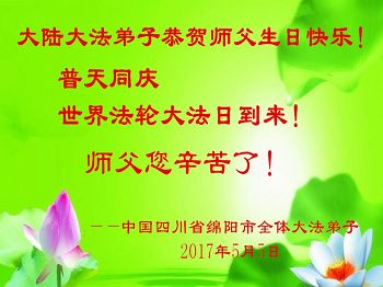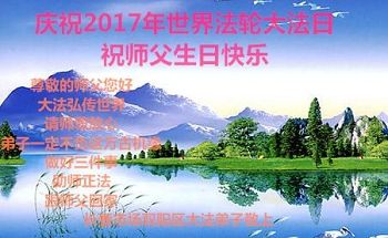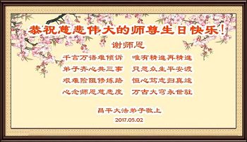 【明慧网二零一七年五月十一日】在师父六十六岁华诞之日,明慧网收到来自全国二十一个省、四个自治区、四个直辖市的大法弟子们给师父的贺信,感谢师父不辞辛苦洪传大法救度众生二十五周年!特别感谢师父对修炼中的弟子的保护和关怀,使弟子们走过这段不同寻常的助师正法之路。
