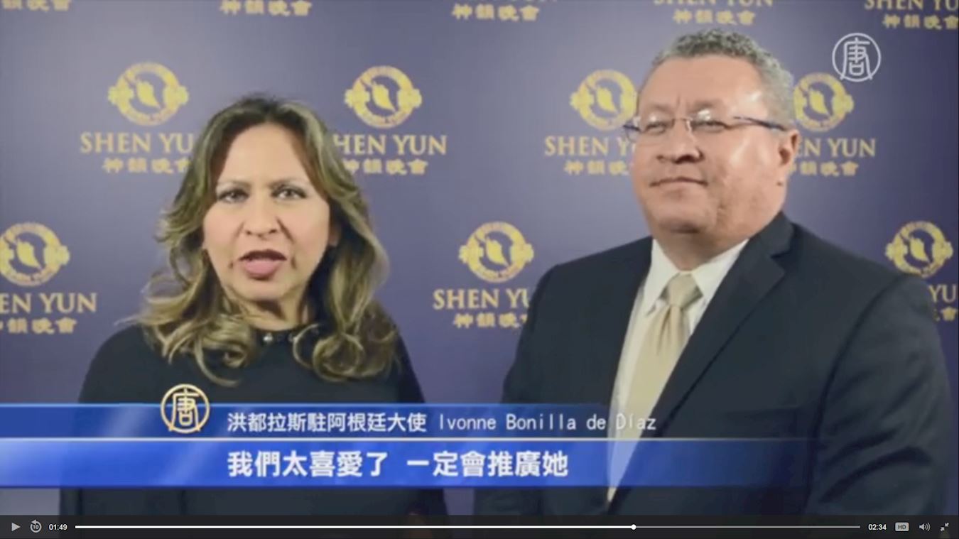 洪都拉斯驻阿根廷大使伊冯·邦尼娅·戴迪亚(Ivonne Bonilla de Díaz)女士观看演出后表示,她希望能把神韵带去洪都拉斯:“我们太喜爱了,一定会推广她,作为文化和艺术之间的桥梁,我们将为此服务,以便有一天将他们带到洪都拉斯”。