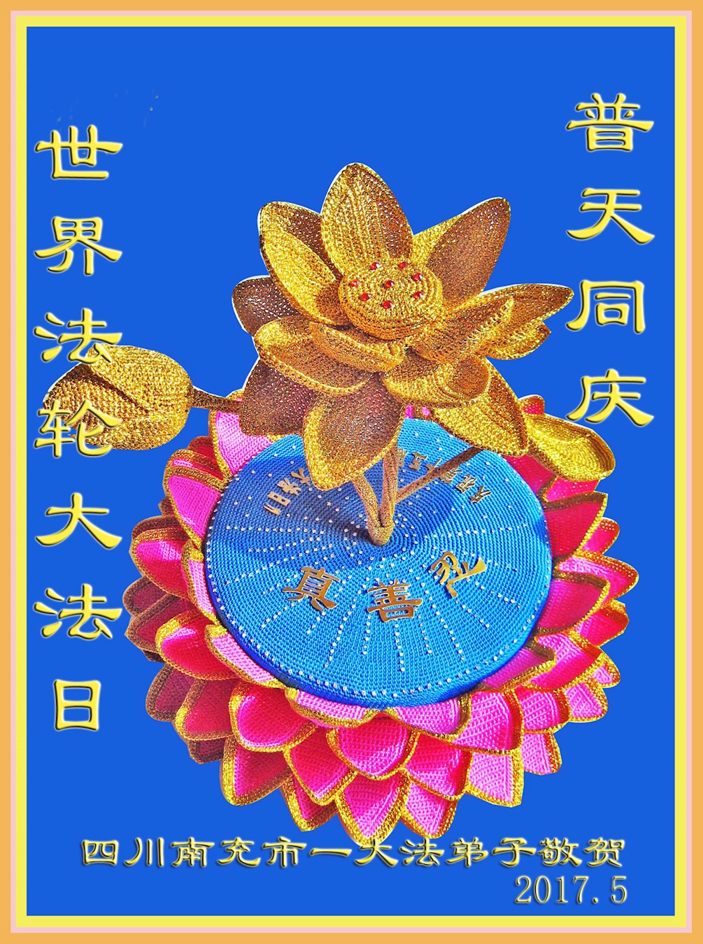 【明慧网2017年5月11日】编者注:“严正声明”是在压力下曾给邪恶写过“不炼功保证”的法轮功学员宣布重返修炼的声明。为保持严肃性,声明必须用真名实姓发表。如发现使用化名的“严正声明”,将予以删除。在明慧网上发表严正声明,必须写清(1)自己写给邪恶的“保证书”作废;(2)郑重宣布从新修炼、弥补损失。【庆祝513】彩塑粘贴画:共贺法轮大法日