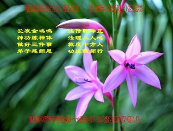 一九九四年底,慈悲伟大的师尊亲临郴州传法。这是郴州大法弟子的荣幸,也是郴州百姓的福音,给郴州的历史留下了最浓重的一笔。一九九九年七月二十日之后,在饱受残酷迫害岁月里,我们郴州全体大法弟子也未曾改过初心。现在已到了师父正法最后的最后,我们郴州市全体大法弟子一定好好听师父的话,做好三件事,不负恩师的重托。最后,我们想跟恩师说:“师父啊,您辛苦了!我们真的很想念您,期盼早日见到您!”