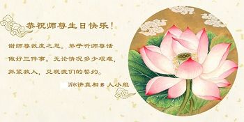 师父您好!弟子一想起师父就禁不住泪流满面,是您把弟子从地狱里捞起,为弟子洗净满身的业力,净化身心,使弟子脱胎换骨!