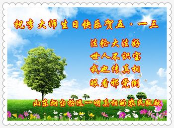在法轮大法洪传二十五周年之际,中国大陆各地的民众发来贺词,借明慧网转达他们对大法师父李洪志先生的敬仰!中共江氏集团肆意诽谤、迫害大法已达十八年,然而,十八年来,越来越多的百姓看清了法轮大法好的真相,走出了中共谎言的欺骗,尤其是法轮功学员身边的亲人、邻里、同事们,他们由衷的赞美大法的美好和给他们带来的福音。