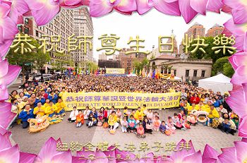 美国纽约、旧金山、洛杉矶、明尼苏达、西雅图、休士顿、达拉斯、圣地亚哥、新泽西、俄勒冈、亚利桑那等18地大法弟子恭祝师尊华诞!