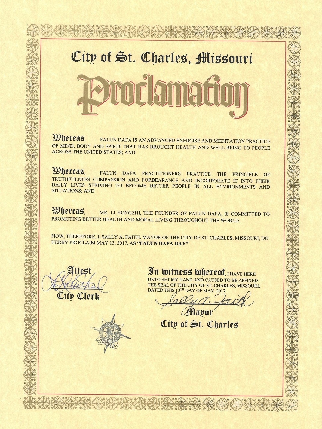 密苏里州圣查尔斯市(St. Charles)宣布法轮大法日