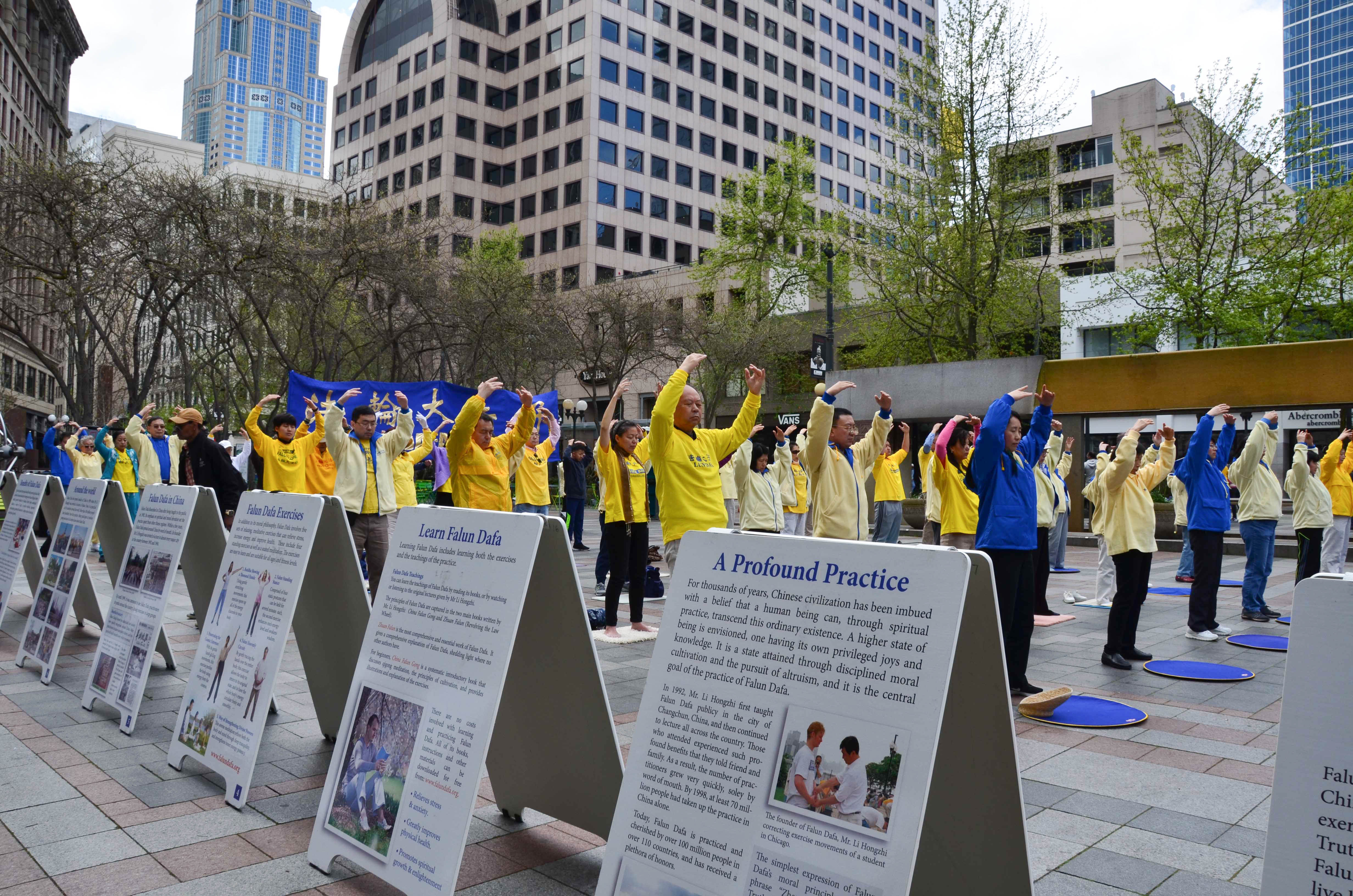 ![]() 图1:五月七日西雅图部分法轮功学员在西雅图市中心的西湖公园(Westlake Park)欢庆“5.13世界法轮大法日”和恭贺李洪志师父华诞。 |