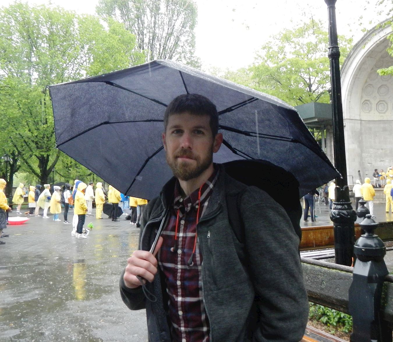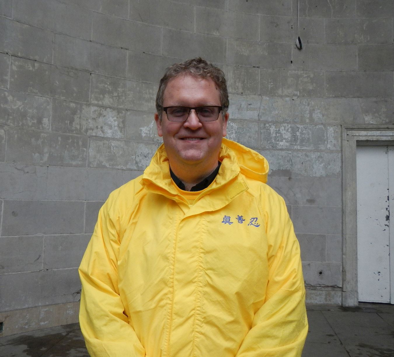 吉纳·罗曼洛斯基(Gene Roamanosky)是冒雨在中央公园坚持炼功的学员中的一员。他是纽约一所私立高中的英文老师,从两年前开始炼法轮功。他说,以前在纽约看到学员在公园炼功时,就觉得法轮功功法很美好,后来又在纽约街头看到法轮功学员的讲真相活动以及游行,他还自己上网搜寻有关法轮功的讯息,慢慢的了解了很多。最后,他决定开始修炼法轮功。