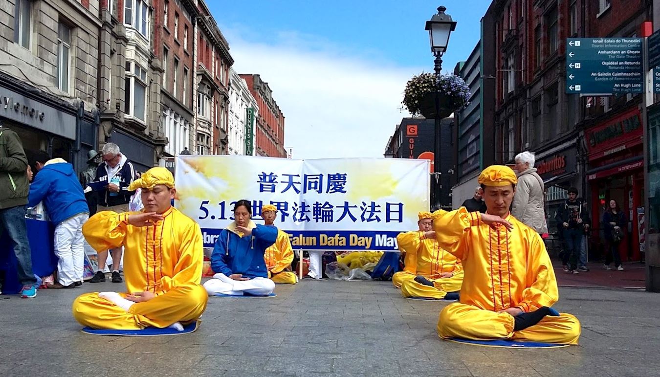 法轮功的庆祝活动吸引了众多的市民驻足观看,人们不断报以掌声和微笑。当人们看到法轮功在中国无辜被迫害的展板,毫不犹豫地在反迫害征签表上签名。他们有着不同肤色,有来自爱尔兰的本地人,也有居住在爱尔兰的东欧人、英国人、巴基斯坦人和尼日利亚人等等。