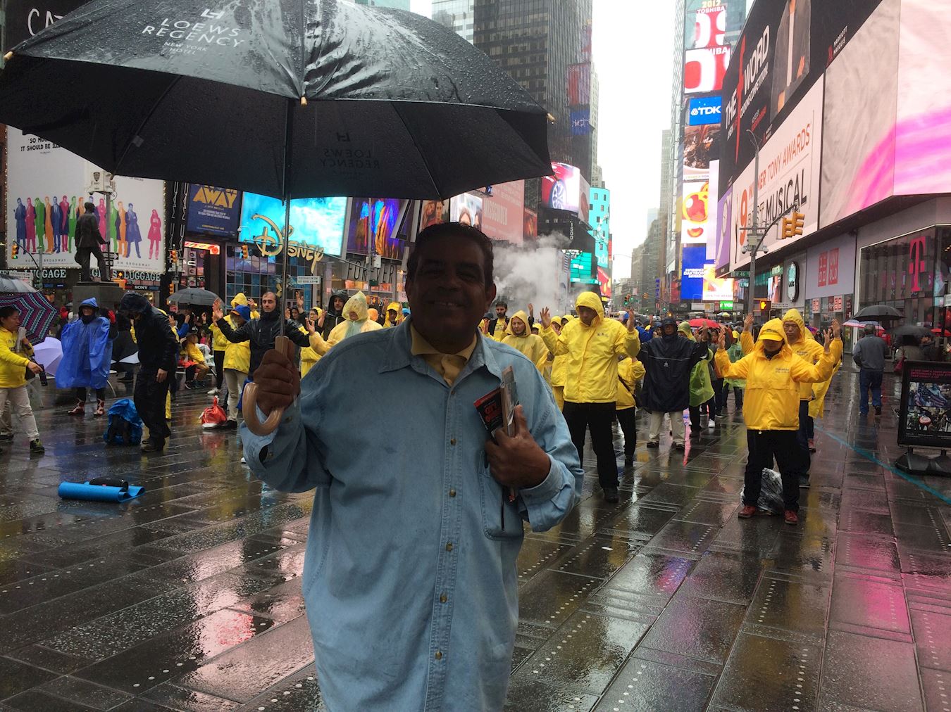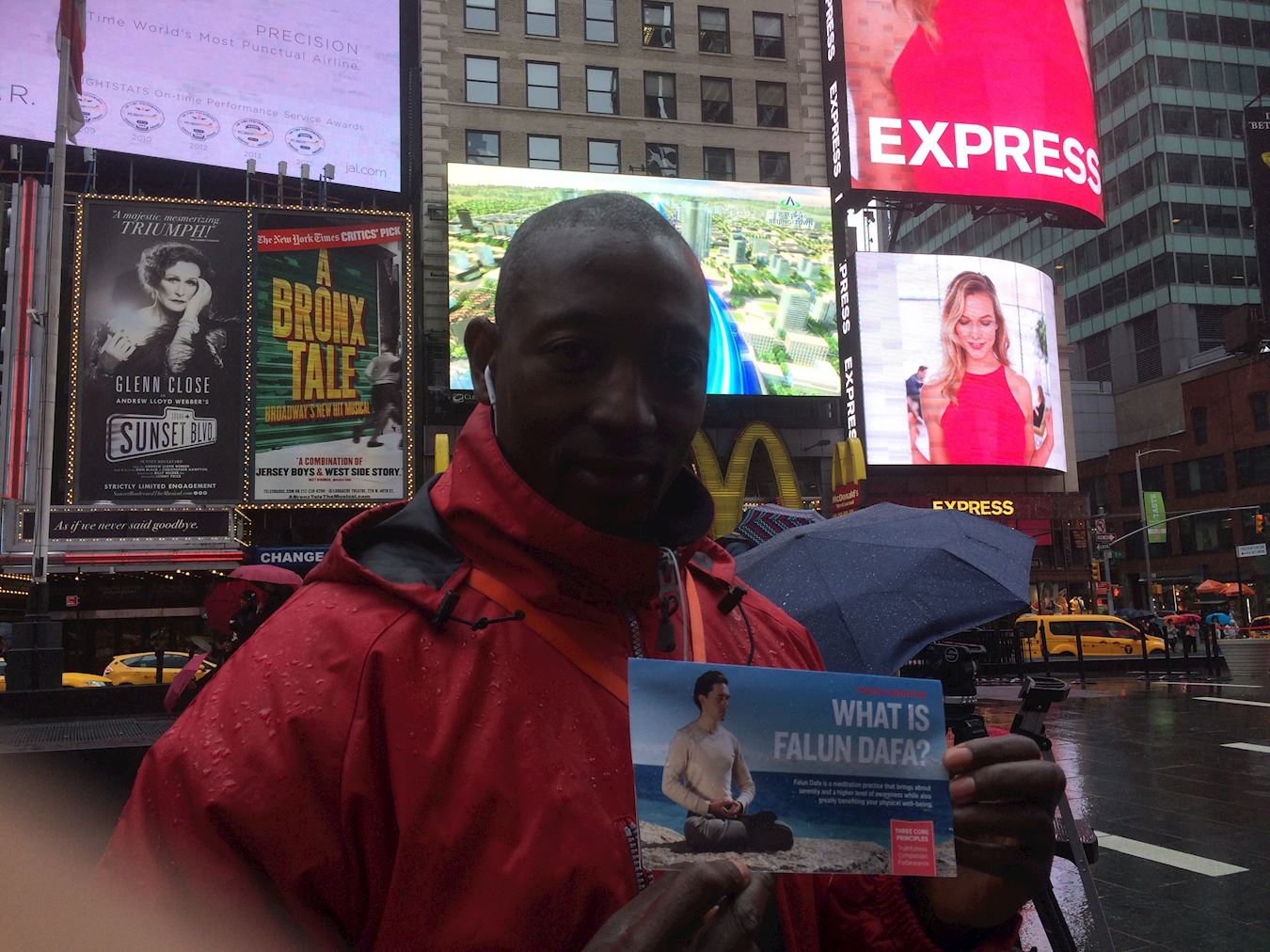 Craig从事销售行业,他被法轮功学员忘我精神感动,他说:“他们站在雨中,在时代广场的中心,如此忘我。”他说,我们的社会需要更多的“真、善、忍”精神。