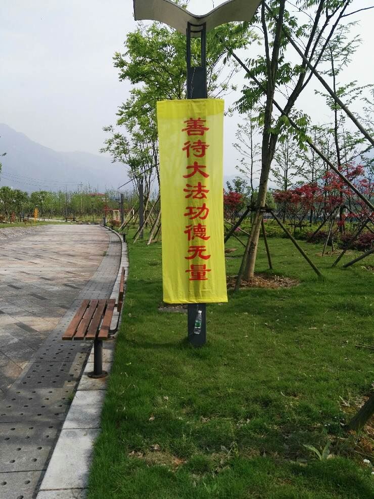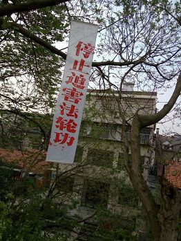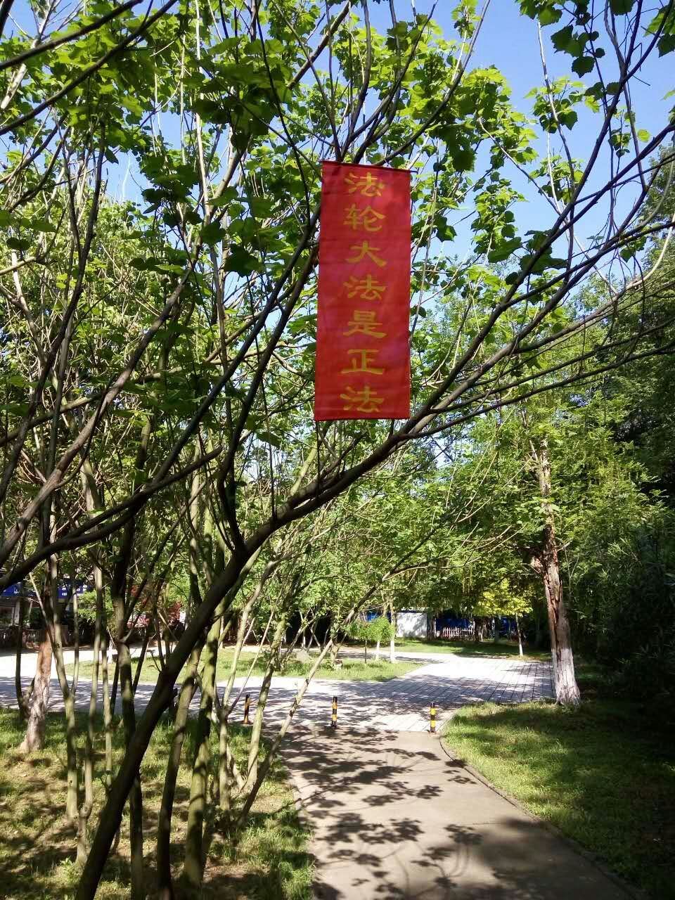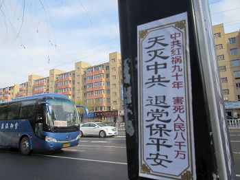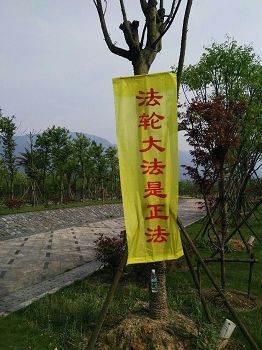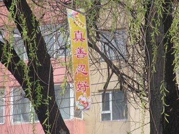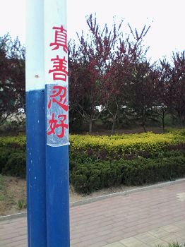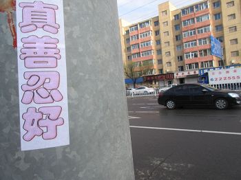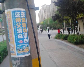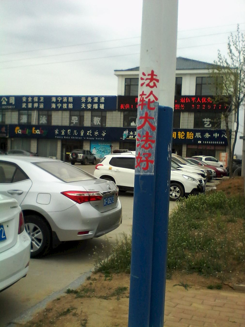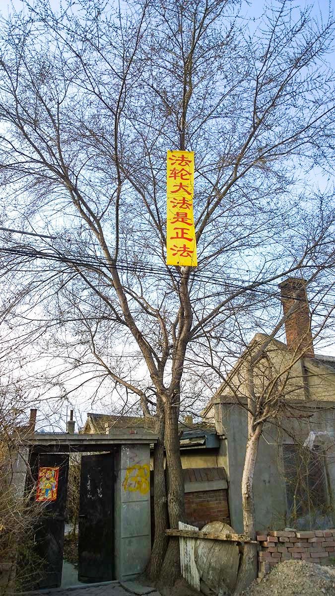 山东省烟台市一乡镇纪念4,25的展板和大法真相粘贴