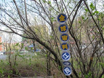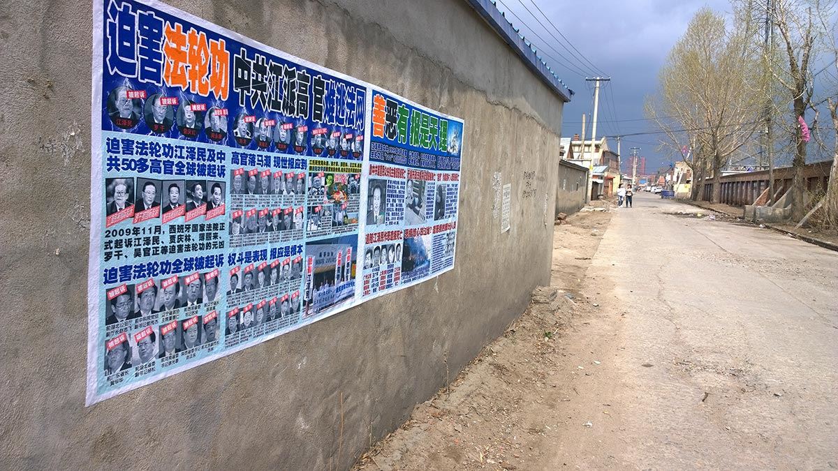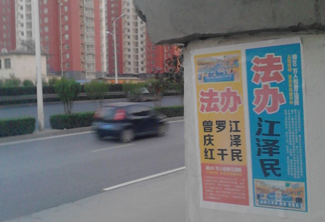 哈尔滨市郊乡镇近日随处可见的真相展板粘贴条幅