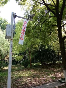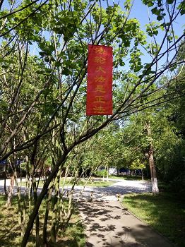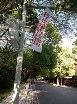 纪念4.25 山东省沂水县悬挂在街头的展板