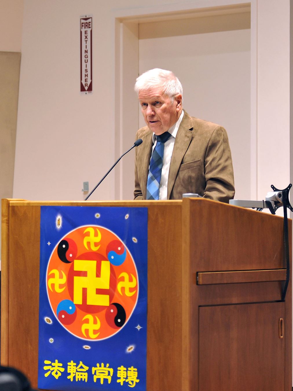 一位青年学员王先生交流了他在国内的大学校园里,如何突破怕心,在一次晚自习中,和同班一位同学讲真相的过程,他说:“我一下就冲破了这层阻挡我讲真相的因素,身体感觉很轻松、祥和,在这种状态下,我向这位同学讲了大法的真相,最后还向我请了《转法轮》回去看,后来还给我书时对我说:‘里面很多讲的很有道理,你好好炼。’”同时他也讲述了自己在校园魔性和变异思想的污染下,而形成的色欲和玩游戏的瘾好,在来到海外推神韵的过程中,如何正念分辨假相和真我,坚定清除执着和外来阻挡的过程。