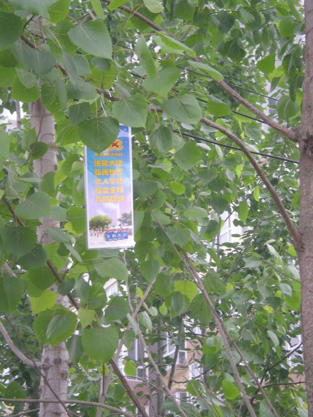 为了庆祝世界法轮大法日“五一三”及师尊华誕的来临之际,陕西省全体大法弟子同祝同贺世界法轮大法日,恭祝伟大慈悲的师尊生日快乐!同时在这个伟大的节日里,为了救度众生,把大法的福音传给陕西的众生,以下是出现在陕南地区的部分真相树挂。