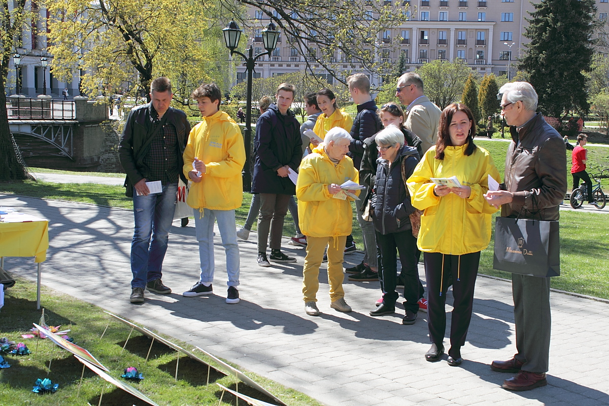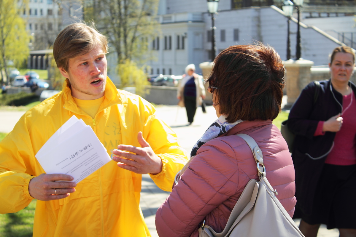 【明慧网二零一七年五月二十日】五月十三日一个庄严的日子,今年是第十八届世界法轮大法日,也是李洪志大师传出的这个古老的性命双修功法弘传二十五周年为庆祝世界法轮大法日,二零一七年五月十三日,拉脱维亚(Latvia)法轮功学员在拉脱维亚大学和国家歌剧院之间的公园里举行讲真相活动,很多民众都有机会看到了这个活动,并了解了真相。