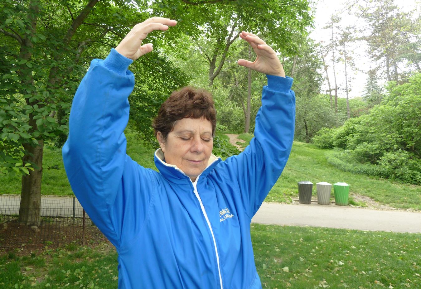 二零一七年五月十二日一大早,数千名来自世界各地的法轮功学员汇集在联合国广场上,等待着一年一度的“法轮大法日”大游行开始。Nadia身穿炼功服,静静地站在那里。她身材娇小,虽然已经六十二岁,但眉宇间显现出的精气神如同年轻人一样,一望之下还以为她才四、五十岁。