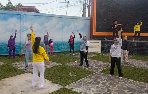 巴淡岛法轮功学员从四月份开始,在阿吉石-圣淘沙区巴淡岛组织了集体炼功,和腰鼓队的演出。许多当地正在做体操的人民也因此有了机会拿到学员发的资料、开始认识了法轮功。