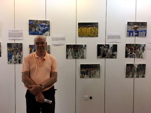 在照片展上,学员们展示了法轮功的五套功法,并向来宾讲述了关于四二五和平上访的真相,以及过去十八年的反迫害经历,特别是揭露活摘法轮功学员器官的罪行,人们听闻真相后纷纷在制止迫害的征签簿上签名。
