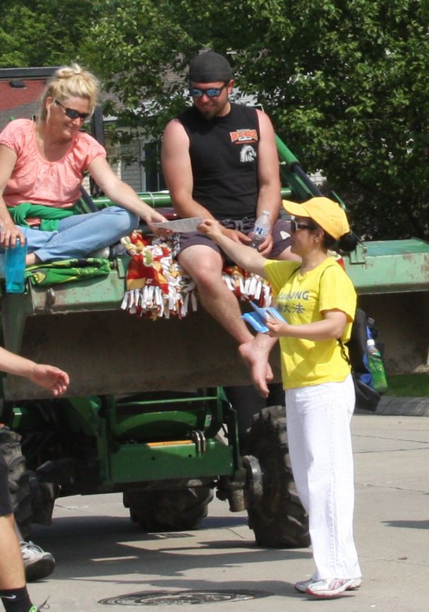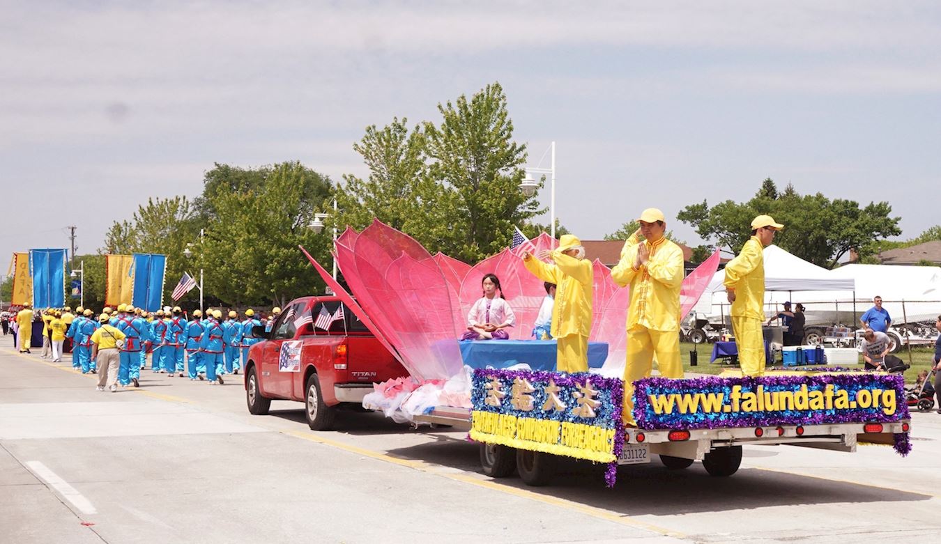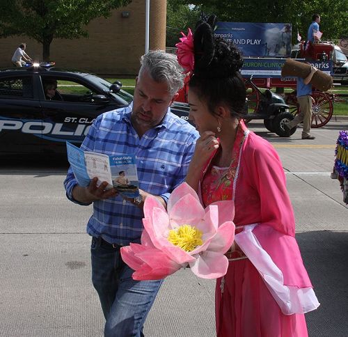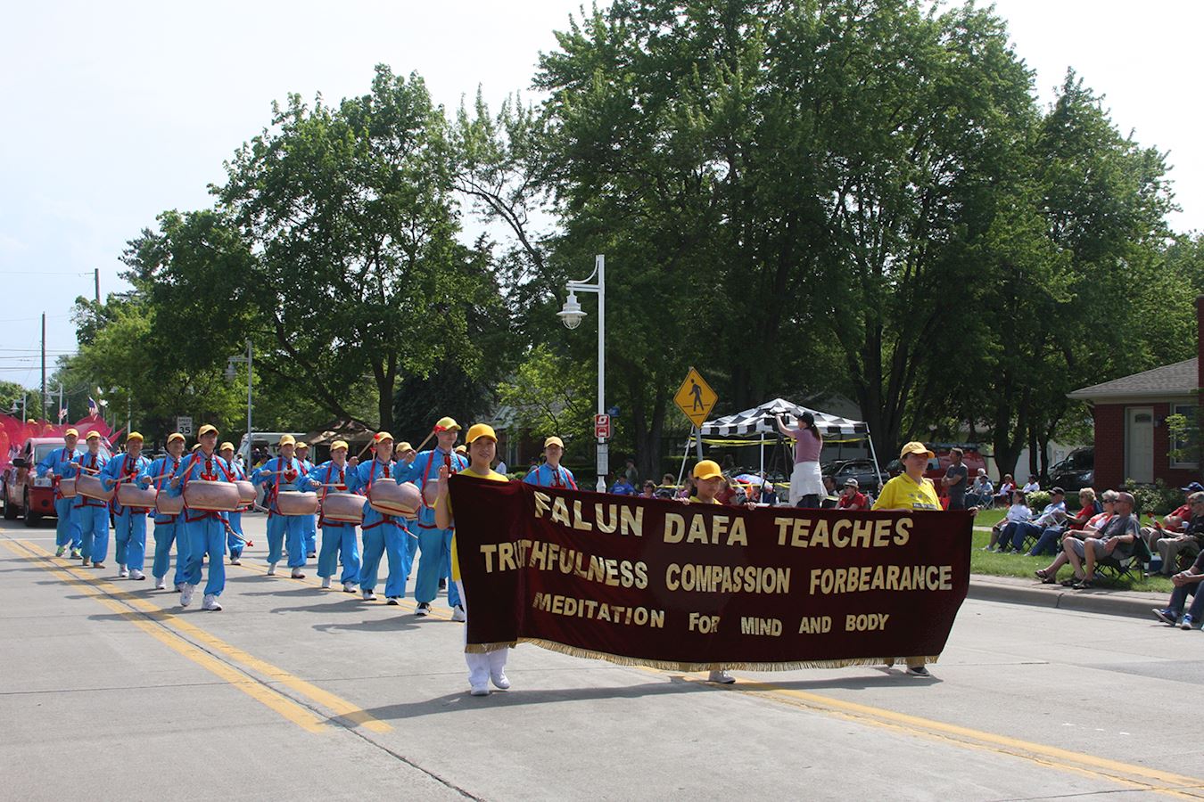 超过一百六十多个退伍军人、军车、各级政要、学生和各种民间团体参加了本次游行。密歇根州法轮功学员们以花车、唐鼓队和仙女队的游行方阵首次参加,亮丽的色彩、平和的功法演示和学员们的精神面貌,都让沿途的观众耳目一新,掌声和欢呼声此起彼伏,在观看游行中也纷纷接过法轮功真相传单。