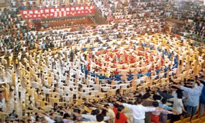 贵州法轮功学员在贵州省体育馆心得交流会期间集体炼功