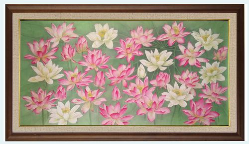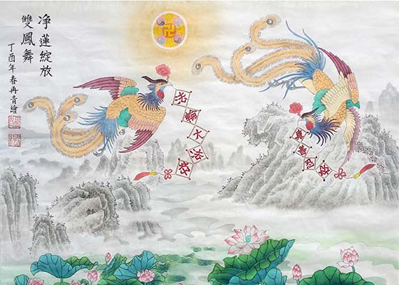 师恩浩荡语难尽 唯有精進添正念 兑现誓约师尊笑 新宇众生喜相盼 满苑莲开风姿展 普天同庆师华诞