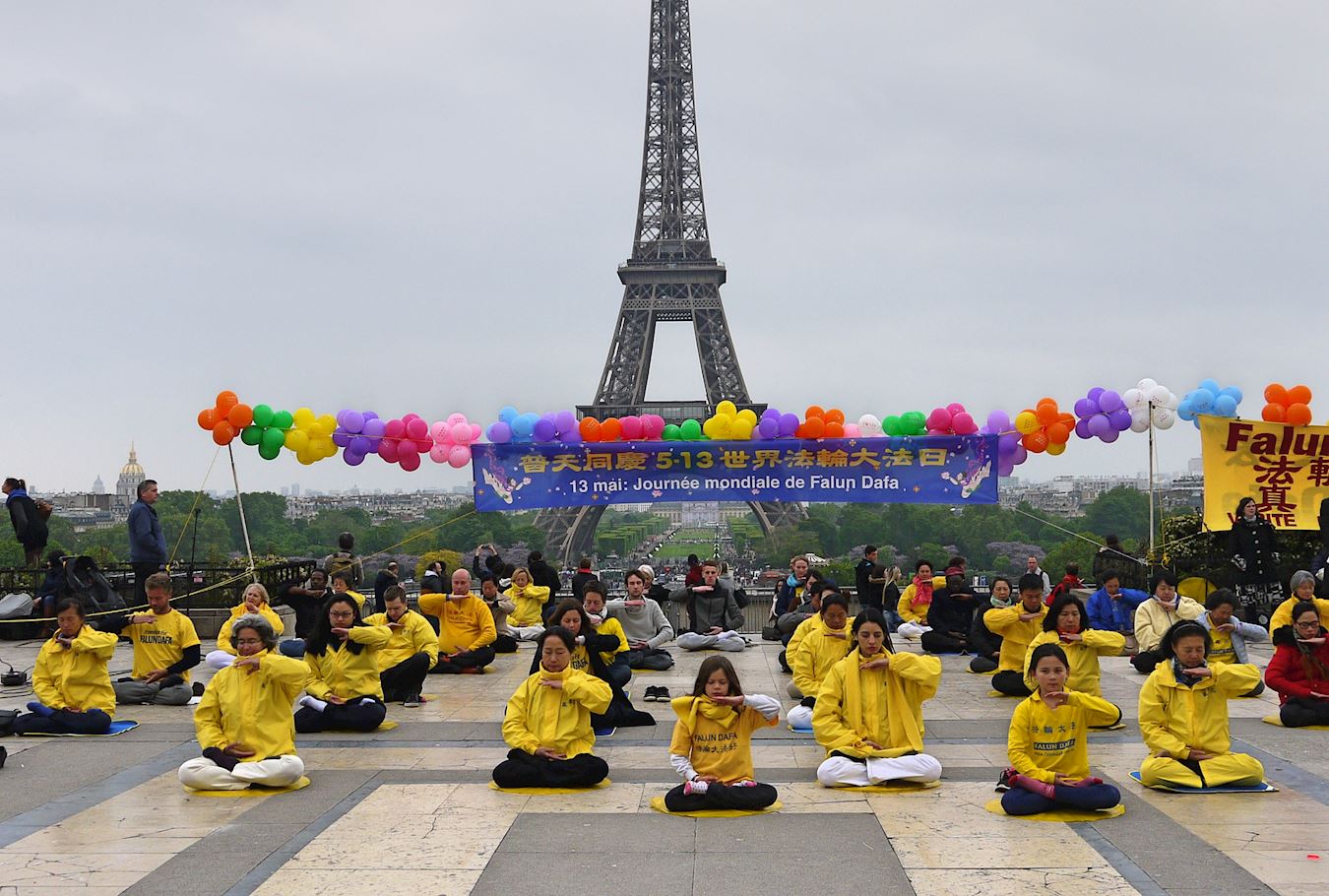 在巴黎艾菲尔铁塔下庆祝法轮大法日(图)