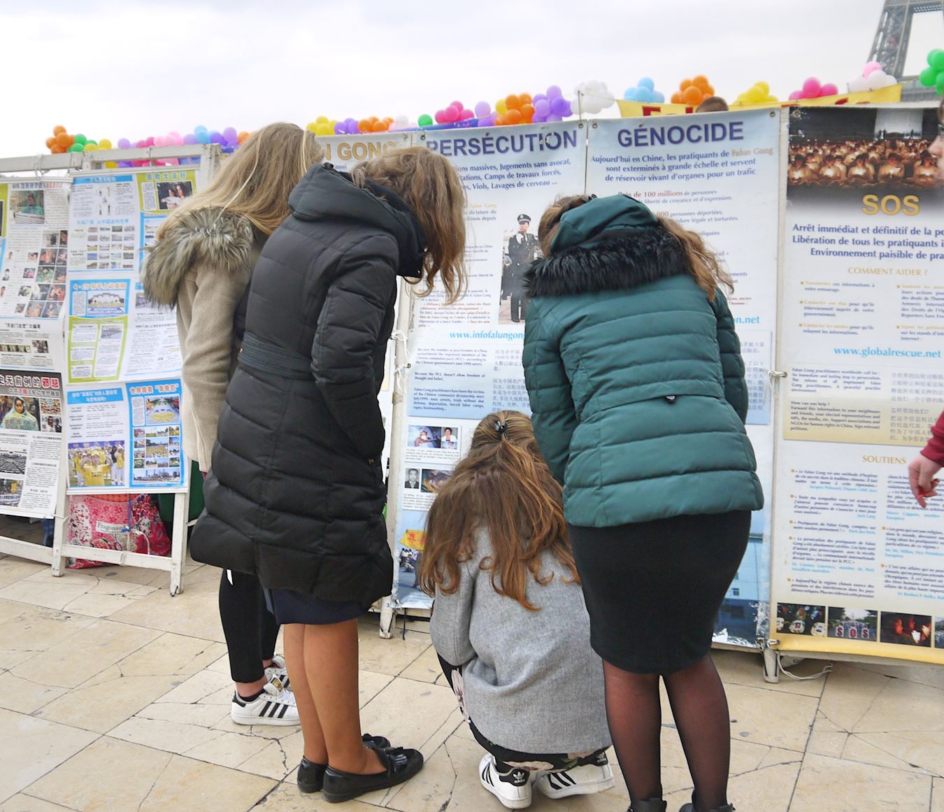 '图4:民众正在阅读展板,了解法轮功的真相。'