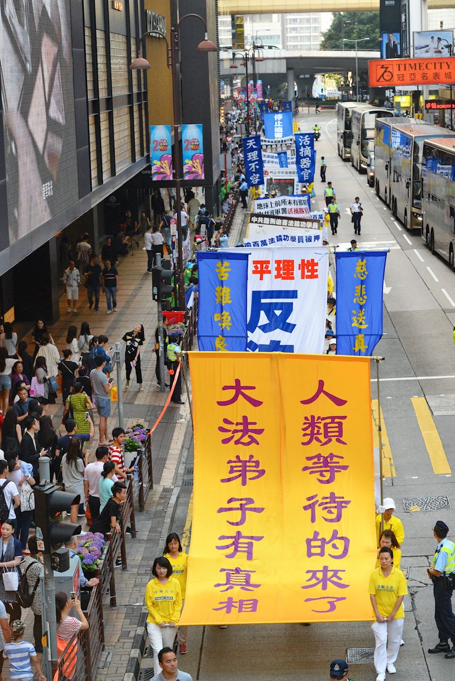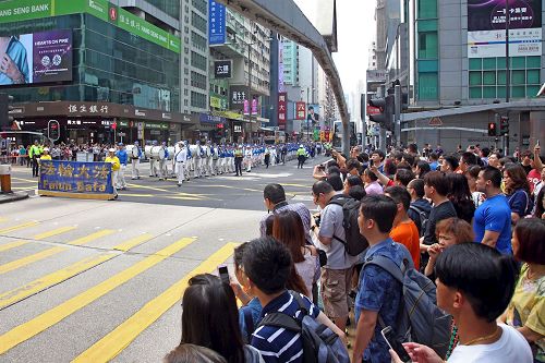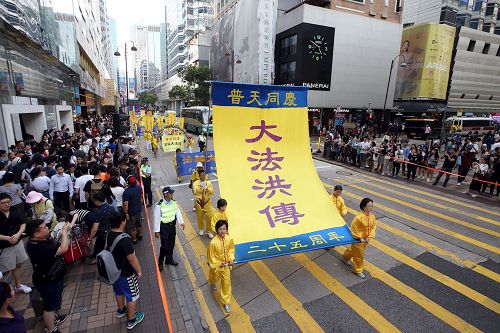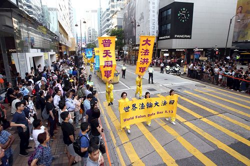 图6~11:法轮功学员游行庆祝“世界法轮大法日”,及“法轮大法弘传世界二十五周年”纪念,吸引香港市民及中西游客驻足关注及拍照。