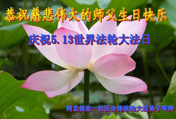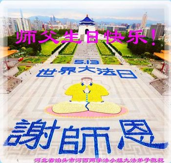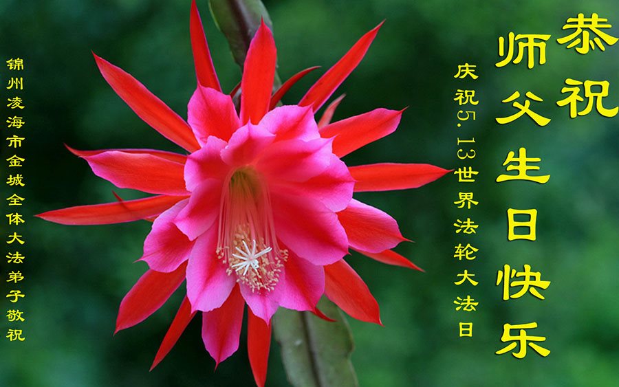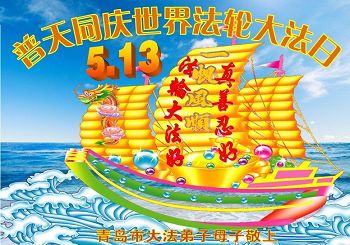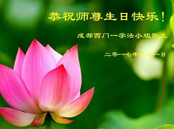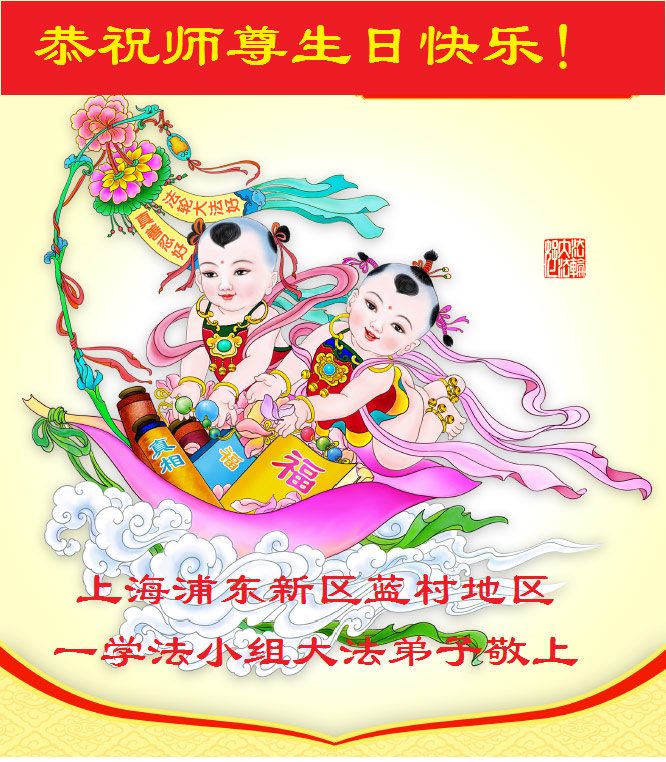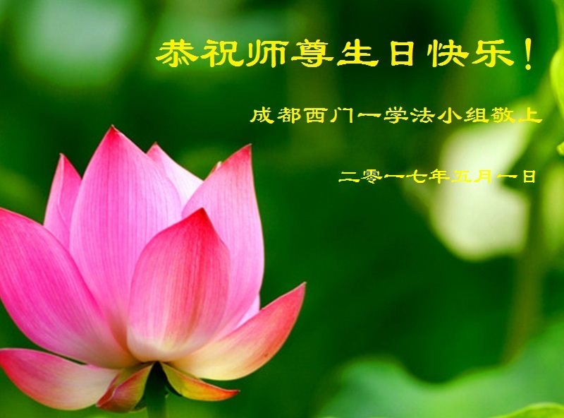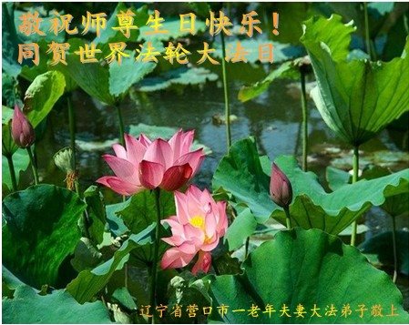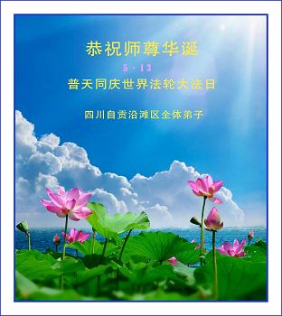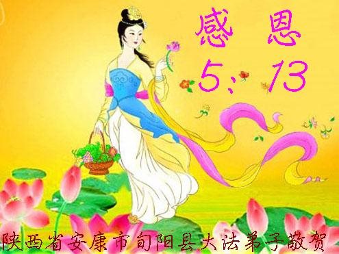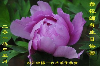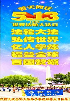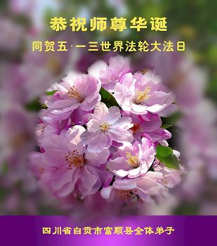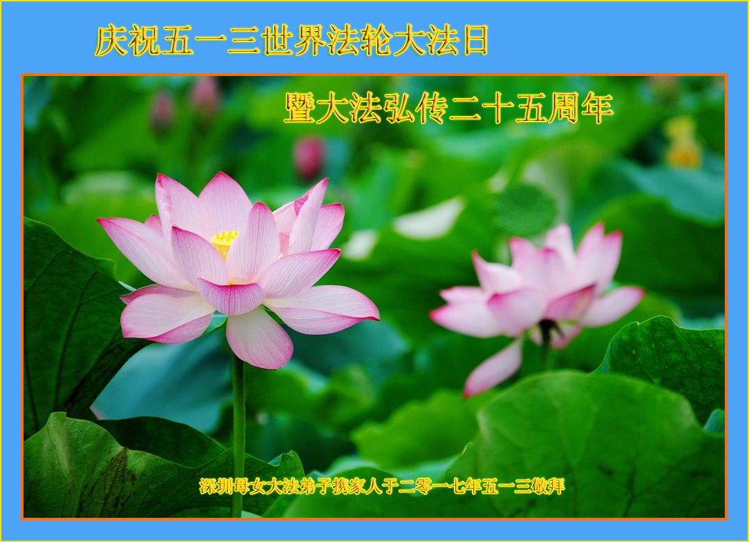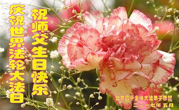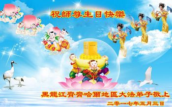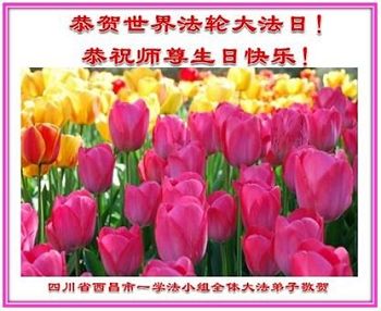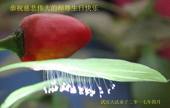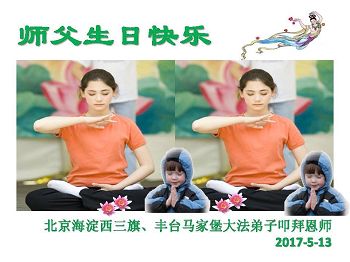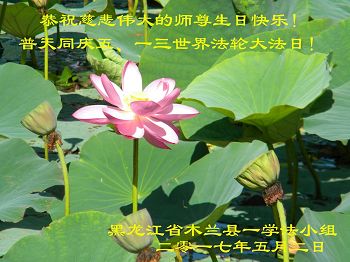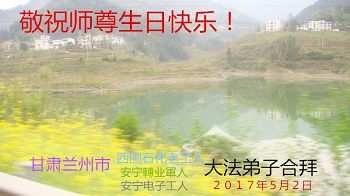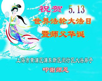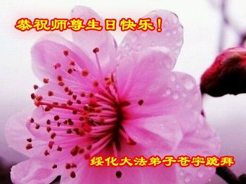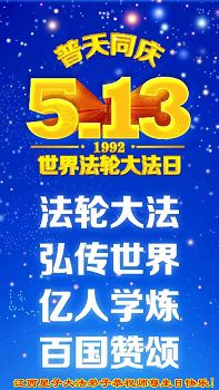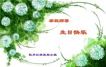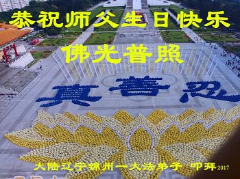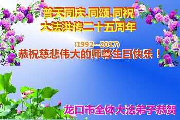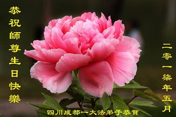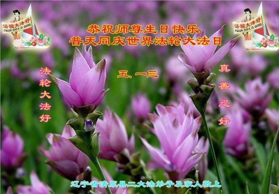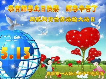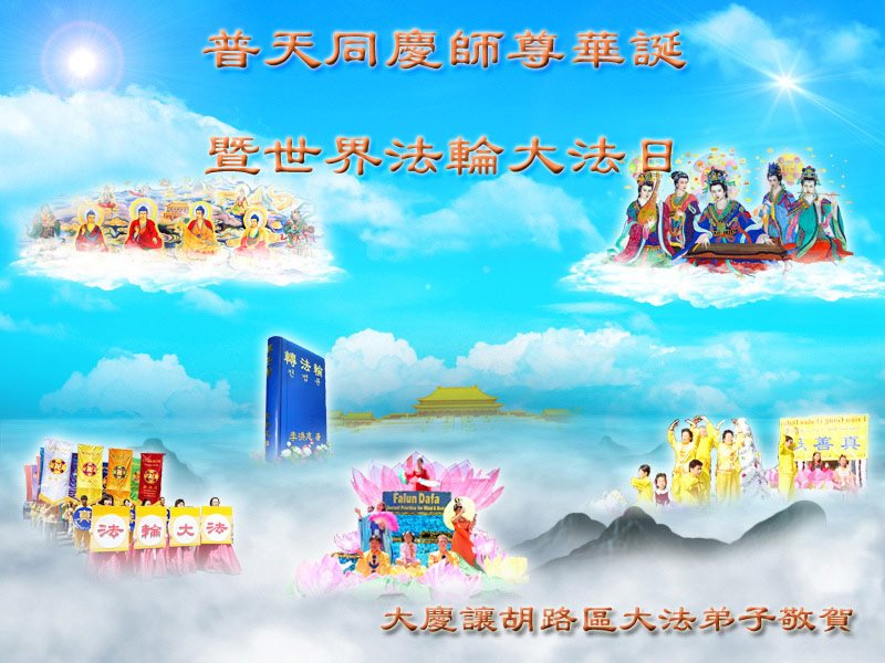 在五一三这个普天同庆队伟大时刻,我和我的家人在此恭祝:恭祝慈悲伟大的师尊生日快乐!为了芸芸众生得救,师父,您辛苦了!在此也祝贺:法轮大法洪传二十五周年!