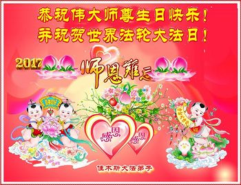 <英文版: http://en.minghui.org/html/articles/2017/5/10/163308.html>教育系统大法弟子恭贺世界法轮大法日暨师尊华诞(19条)
