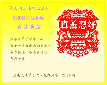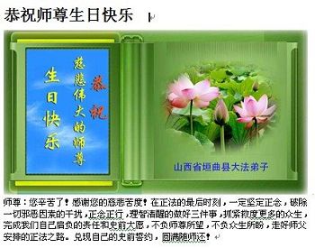 聊城一教育系统大法弟子恭祝师父生日快乐!