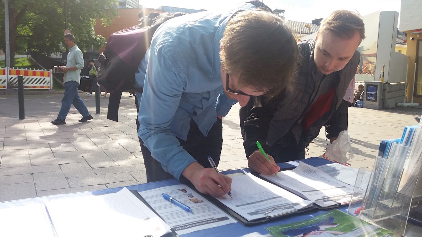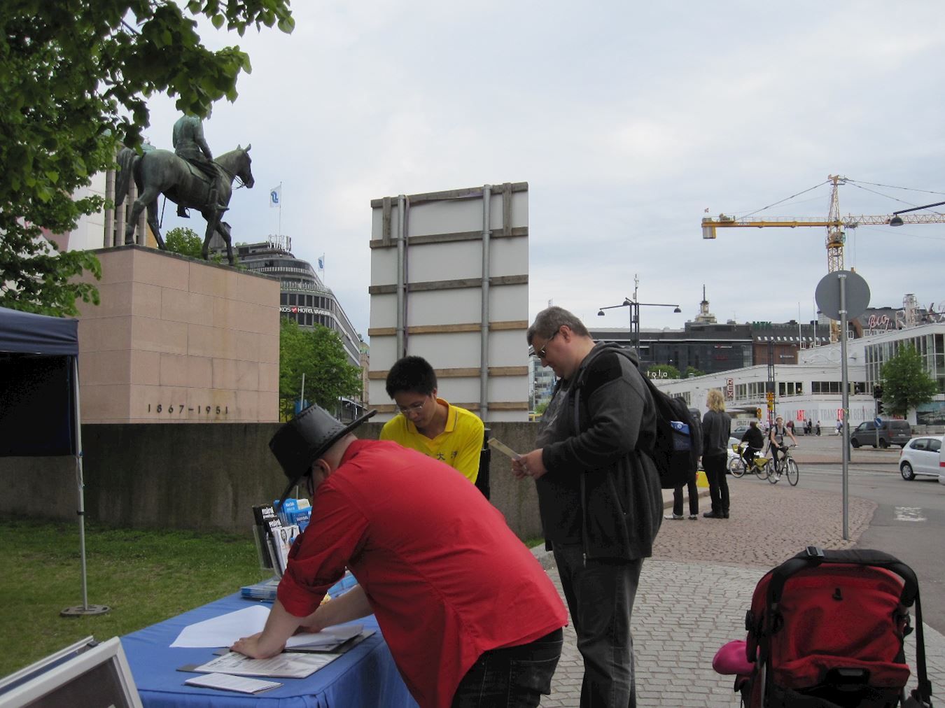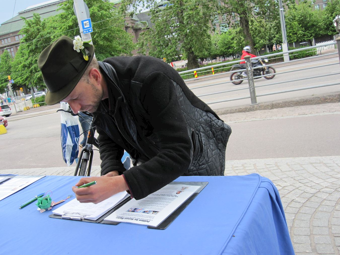 一位工程师Joonas先生了解在中国发生活摘器官一事后,他马上签名支持反迫害。之后他还主动的建议学员去某些地方,在那里可以找到更多民众的支持。