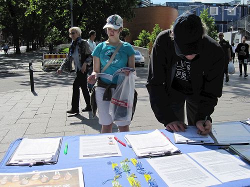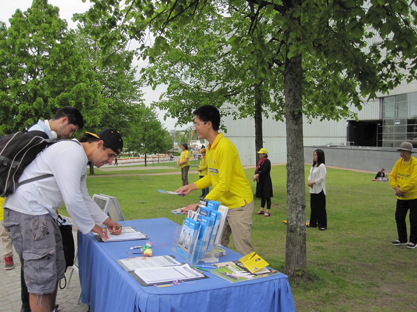 活动过程,不断地有游客了解真相。一对满头银发的华人老人明白真相后,其中一位坦诚地告诉说:“你们给的资料很好啊!我们那里(指中国大陆)从来看不到这些真实的信息。你们很勇敢啊!谢谢你们。”