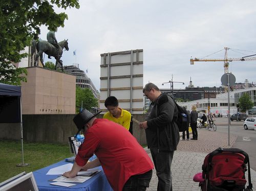 另一位在会计师事务所工作的Risto先生通过了解法轮功在中国被迫害的事,他不但支持学员的活动,离开前还用中文认真地说:“加油!”