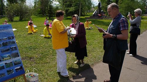 【明慧网二零一七年六月十五日】二零一七年六月十一、十二日,法轮功学员参加了位于俄罗斯西北部的小城科特拉斯(Kotlas)一百周年城市日的系列活动,向当地民众展现法轮大法的美好。