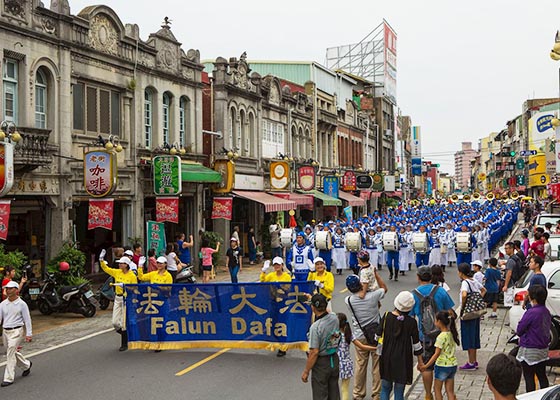 台湾法轮大法天国乐团受邀参加了台南市政府举办一年一度的“管乐艺术季”开幕大游行,吸引了很多观众……