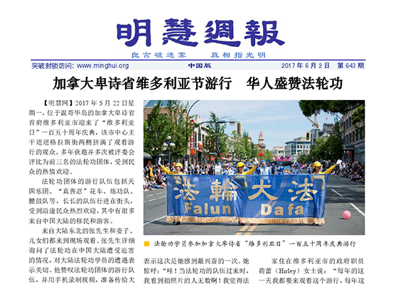 加拿大卑诗省维多利亚节游行 华人盛赞法轮功